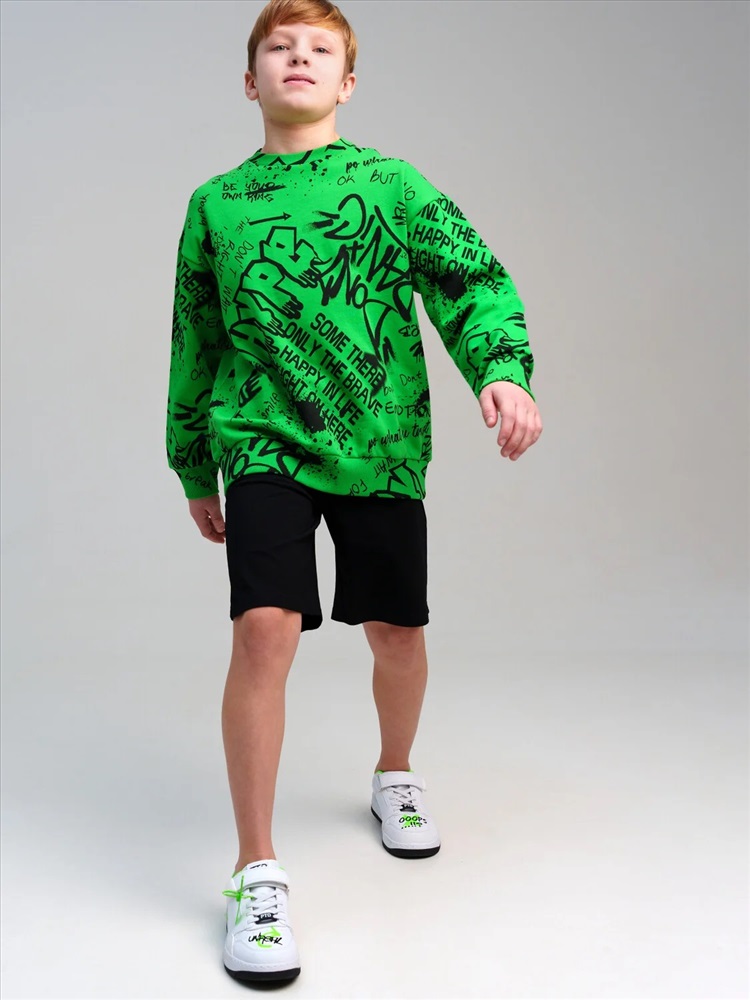 Свитшот для мальчика подростка. 100% хлопок. Манжеты и низ изделия в эластичный рубчик. Модель выполнена из качественного и приятного на ощупь трикотажа.