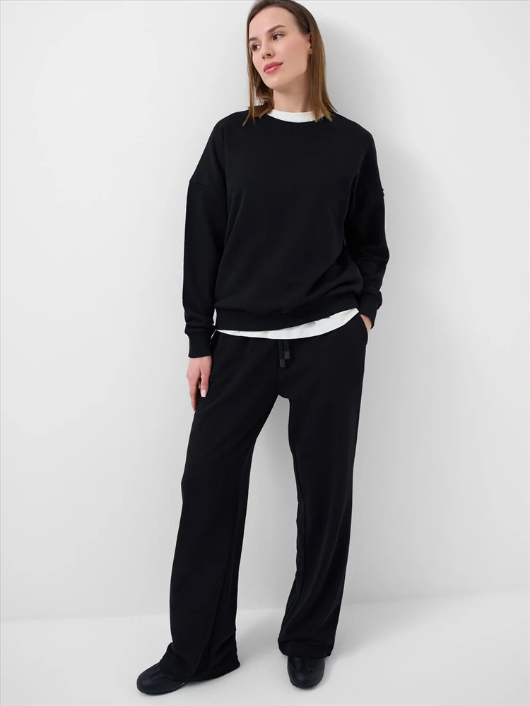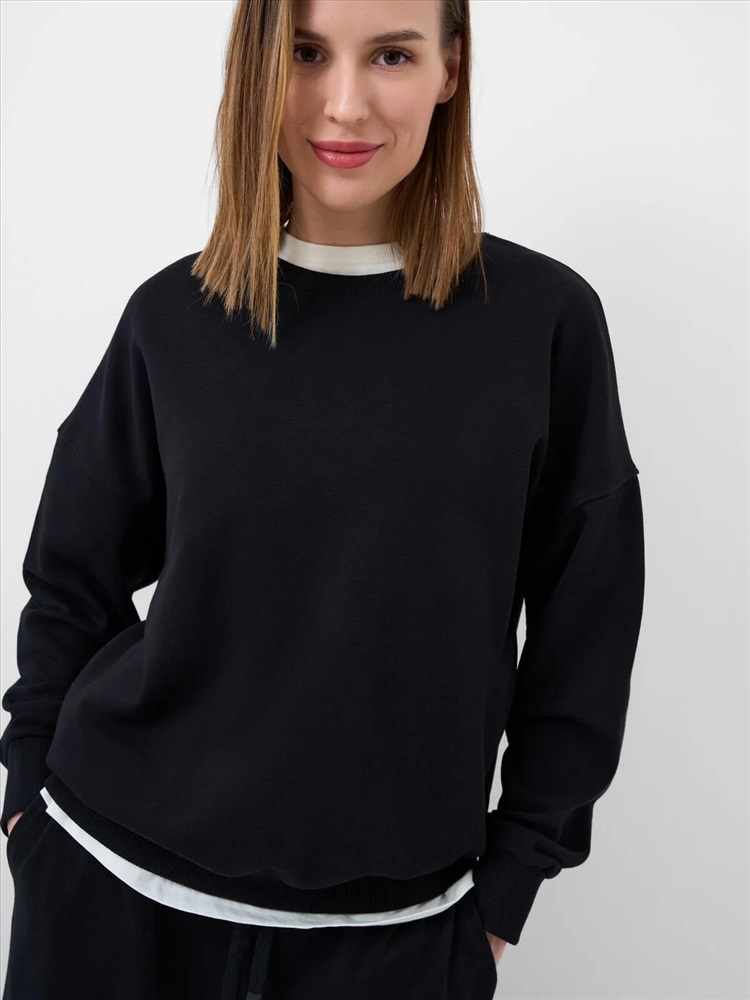 Производитель: PLAYTODAY; Российский размер: 44; Обхват груди: 84-88; Обхват талии: 66-70; Обхват бедер: 92-96; Артикул поставщика: 12666260; Состав: 60% хлопок, 40% полиэстер; Год: 2026 Женский черный свитшот оверсайз. Выполнен из хлопкового футера без начеса. Горловина, манжеты и низ изделия выполнены из эластичного риба, что обеспечивает комфортную посадку.