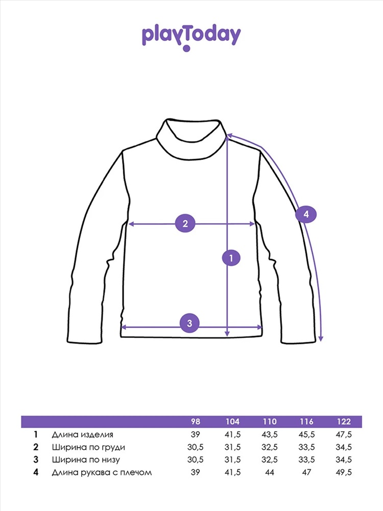Производитель: PLAYTODAY; Российский размер: 98; Рост: 98; Возраст: 3; Обхват шеи: 25,5; Артикул поставщика: 32532034; Состав: 95% хлопок, 5% эластан