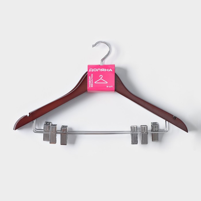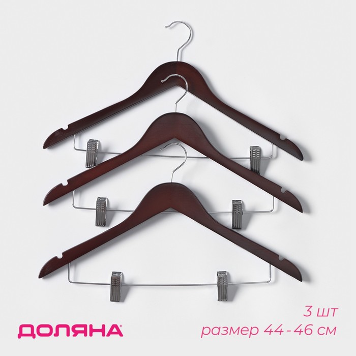 Габариты: 44,5 x 28 x 4 Страна: Китай В боксе: 32 набор Состав: Дерево, металл Материалы: дерево, металл Фасовка: по 1 набор Индивидуальная упаковка: Клапан Габариты товара: 44,5 см × 24 см × 2,7 см Сертификат: Не подлежит сертификации Набор: Да Цвет: Коричневый Ширина, см: 44,5 В наборе, шт.: 3 Вид вешалки: Для рубашек, блузок, трикотажа Возраст: Взрослый Материал: Дерево Размер: 44 - 46 Поворотный крючок: Нет Покрытие: Без покрытия Широкие плечики (от 2 см.): Да На неудачно сложенной одежде могут появиться заломы и складки, из-за чего вещи приходится гладить повторно. Это маленькое неудобство можно решить с помощью специального предмета. Вешалка – это компактное приспособление, которое позволит вам разместить в гардеробе классические штаны из лёгких или плотных материалов, блузки, рубашки, кофты и другие вещи. Изделие практичной формы занимает мало места, что позволяет экономить пространство в шкафу. Противоскользящее покрытие надёжно зафиксирует одежду и предотвратит её падение. Преимущества: