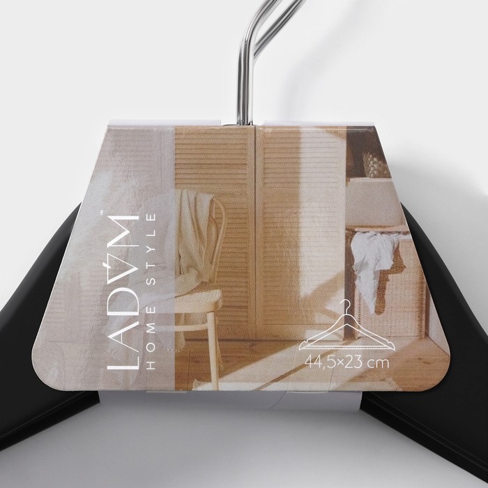 Габариты: 45 x 23 x 3,5 Страна: Китай В боксе: 32 набор В наборе: 3 набор Состав: Дерево, металл, ПВХ Материалы: дерево, металл, ПВХ Фасовка: по 1 набор Индивидуальная упаковка: Клапан Габариты товара: 23 см × 44,5 см × 1,2 см Сертификат: Не подлежит сертификации Набор: Да Цвет: Чёрный Ширина, см: 44,5 В наборе, шт.: 3 Вид вешалки: Для верхней одежды, Для рубашек, блузок, трикотажа Возраст: Взрослый Материал: Дерево Размер: 23 - 44.5 Поворотный крючок: Нет Покрытие: Soft touch Широкие плечики (от 2 см.): Нет На неудачно сложенной одежде могут появиться заломы и складки, из-за чего вещи приходится гладить повторно. Это маленькое неудобство можно решить с помощью специального предмета - вешалка. Вешалки с покрытием Soft-Touch — это идеальное решение для хранения одежды. Благодаря специальному покрытию, одежда не соскальзывает с вешалок, что обеспечивает бережное хранение. Это надёжное и качественное решение для вашего гардероба. Они помогут сохранить форму одежды и организовать удобное хранение вещей. Преимущества: