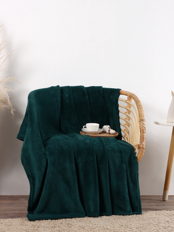 Благодаря бархатистой текстуре материала, плед создаёт ощущение тепла и покоя, а насыщенный зелёный оттенок навевает свежесть лесных просторов. Это идеальное украшение для вашего дивана или кровати, которое добавит стильный акцент в интерьер.