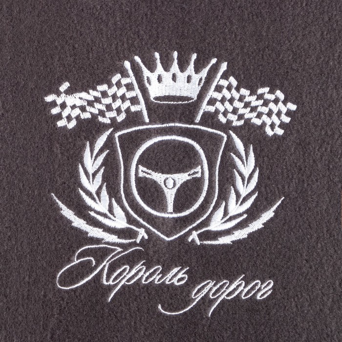 - Стильный серый цвет и вышивка с цифрами и надписями тематически дополняют дизайн.