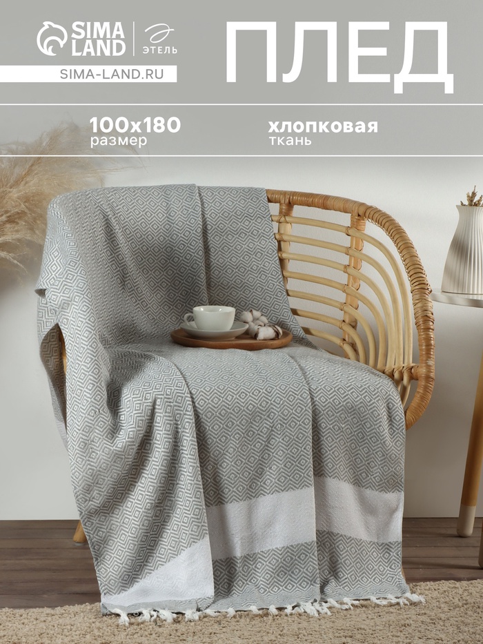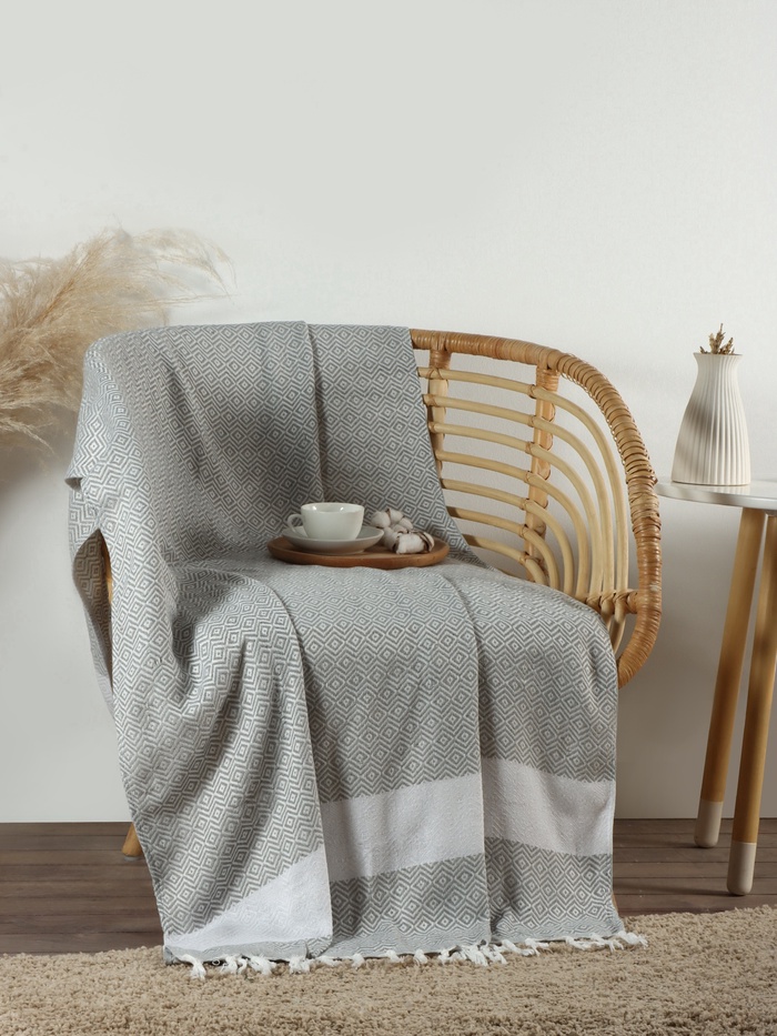 Серый плед с кистями — это выбор для тех, кто ищет спокойствие в нейтральных тонах. Его геометрический узор и сдержанный оттенок помогают создать атмосферу уюта и расслабления, подходящую для взрослых в моменты отдыха. Этот плед становится частью домашнего пространства, приглашая к тишине в любое время.