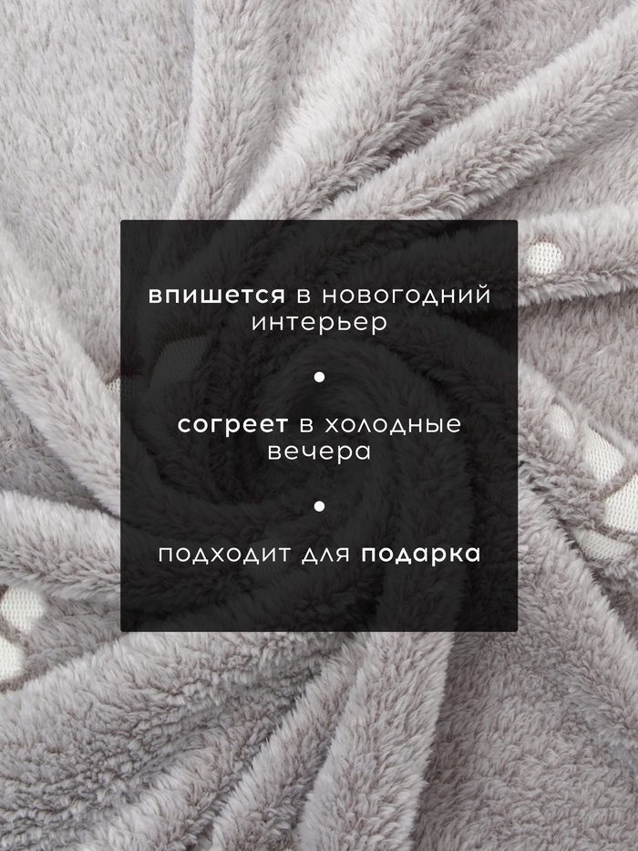 Создаём атмосферу уюта Этот плед станет вашим надёжным спутником в холодные вечера, создавая уютную обстановку для отдыха и семейных встреч. Его универсальный серый цвет и новогодний дизайн легко впишутся в любой интерьер, добавляя нотку волшебства и тепла. Плед не только украсит ваш дом, но и станет практичным аксессуаром для создания комфорта и уюта во время зимних праздников. Комментарии к товару