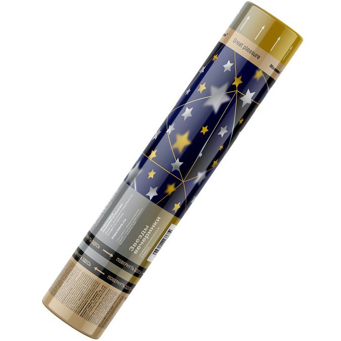 Тип хлопушки: Пневмохлопушки Длина: 300 мм Дальность выстрела: До 8 м Наполнитель: Конфетти Материал наполнителя: Фольга Праздник: День Рождения Размеры упаковки, мм: 300 х 50 х 50 Вес изделия, кг: 0.165 Фасовка: штука Число эффектов: 2 Описание: Пневматические хлопушки - популярный и безопасный аксессуар, идеально подходящий для любого праздника. Если в Вашем празднике есть кульминационный момент - например, вынос праздничного торта, выход молодоженов из ЗАГСа и тому подобное - подчеркнуть его лучше всего одновременным залпом нескольких хлопушек с конфетти или серпантином. В нашем асоортименте - множество громких и мощных хлопушек с самыми разными наполнителями! Алые сердечки из фольги, переливающиеся на солнце? или же дождь из разноцветных ленточек серпантина? а может быть, вихрь денежных купюр - к богатству и достатку? Выбирать Вам! Хлопушка состоит из основной части (в которой спрятан заряд конфетти и серпантина) и баллона со сжатым воздухом, занимающим приблизительно 1/4 длины. Где именно находится баллон определить легко - он выделен жирной линией, стрелками, показывающими направление поворота, и надписью "повернуть здесь". Крепко возьмите в одну руку хлопушку, примерно в середине корпуса. Затем второй рукой (рабочей, если вы правша - то правой) поверните нижнюю часть корпуса в соответствии со стрелками. Не забудьте заранее правильно направить хлопушку! После срабатывания хлопушка делает громкий звук "ХЛОП" и выбрасывает на расстояние 5-8 метров внушительный запас конфетти (или сердечек, или серпантина, или купюр - смотря какие хлопушки Вы приобрели). Эффекты: 1. Хлопок. 2. Выброс наполнителя (звездочки из золотой и серебряной фольги). Комментарии к товару