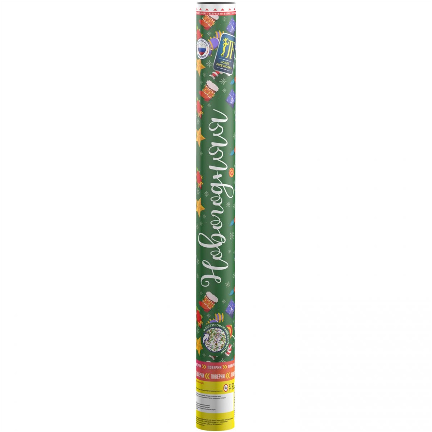 Тип хлопушки: Пневмохлопушки Длина: 500 мм Дальность выстрела: До 10 м Наполнитель: Серпантин Материал наполнителя: Фольга Праздник: Новый Год Размеры упаковки, мм: 500 х 50 х 50 Вес изделия, кг: 0.180 Фасовка: штука Описание: Эти огромные хлопушки до отказа набиты сверкающим серпантином из разноцветной фольги: красный, синий, желтый, зеленый! Хлопушка увеличенной длины - 50 сантиметров, и выстреливает наполнитель на расстояние до 10 метров. Хлопушка оформлена для запуска на Новый Год. Большим достоинством серпантина является простота его уборки, по сравнению с конфетти, поэтому такие хлопушки можно использовать в помещении. Мы рекомендуем брать их для больших банкетных залов и многолюдных праздников! Эффекты: 1. Хлопок и выброс наполнителя (разноцветный серпантин из фольги). Комментарии к товару
