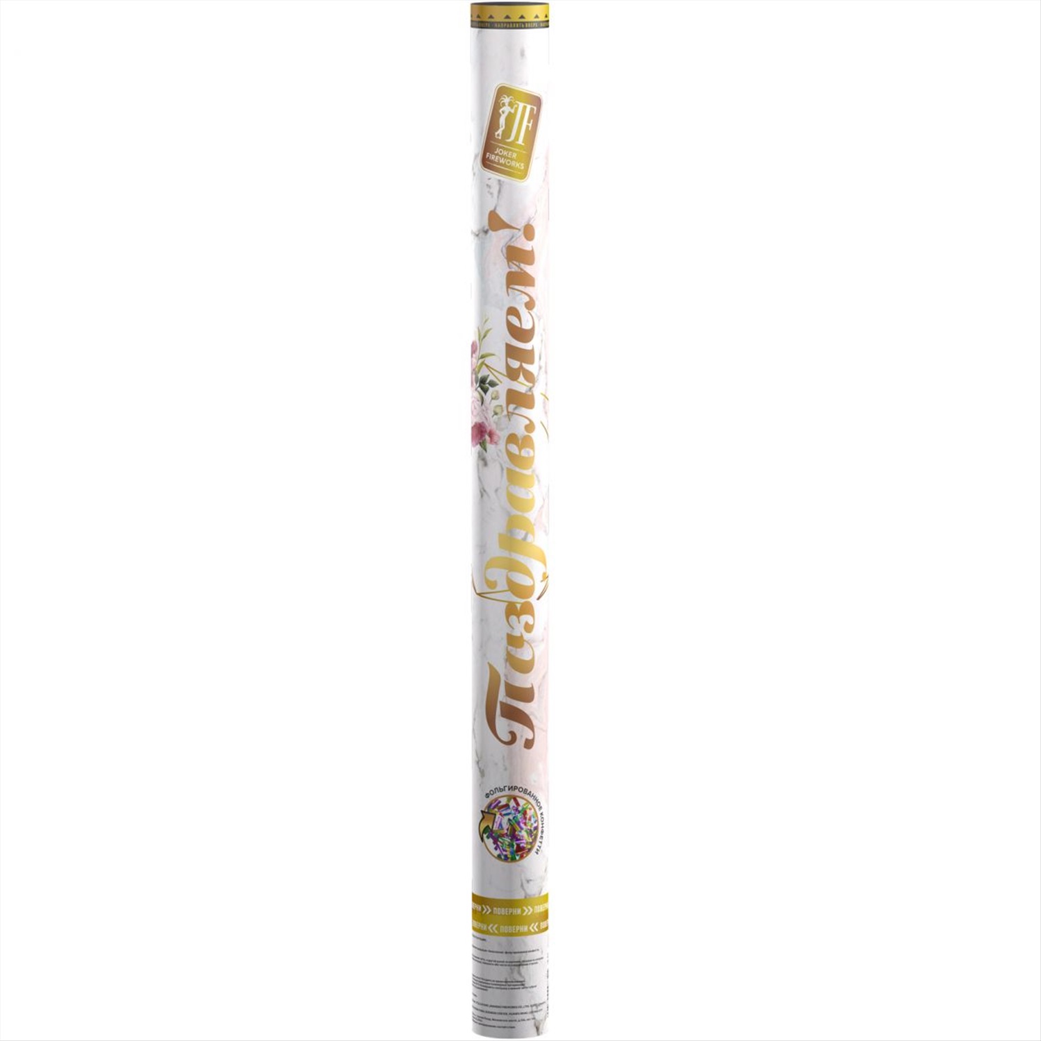 Тип хлопушки: Пневмохлопушки Длина: 600 мм Дальность выстрела: До 10 м Наполнитель: Конфетти Материал наполнителя: Фольга Праздник: Юбилей Размеры упаковки, мм: 600 х 50 х 50 Вес изделия, кг: 0.215 Фасовка: штука Описание: Большие - 60 сантиметров! - пневматические хлопушки, которые идеально подойдут для любого праздника. Дизайн - нейтрально-праздничный, со словом "Поздравляем!", наполнитель - конфетти из разноцветной, сверкающей фольги. Отличительной особенностью хлопушек является очень крупная нарезка наполнителя (длина 1 элемента - 5 сантиметров), что сильно упрощает уборку помещения или улицы, после ее запуска. Наполнитель выбрасывается на расстояние до 10 метров. Эффекты: 1. Хлопок, выброс наполнителя (разноцветный серпантин). Комментарии к товару