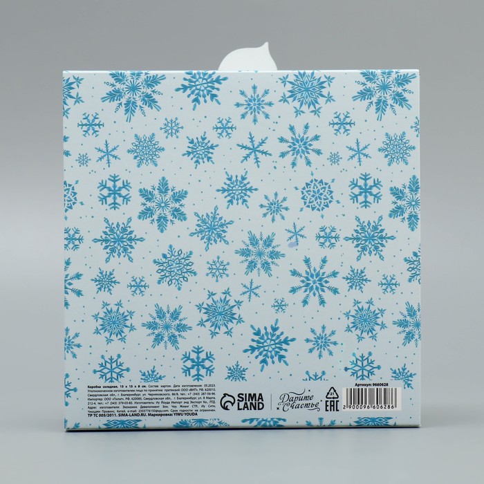 Габариты: 0,3 x 23 x 31 Страна: Китай В боксе: 375 шт Состав: Картон Материалы: картон Фасовка: по 1 шт Индивидуальная упаковка: Пакет Габариты товара: 15 см × 15 см × 8 см Сертификат: ЕАС Цвет: Голубой Форма: Квадратная Плотность, г/м²: 250 Длина, см: 15 Ширина, см: 15 Высота, см: 8 Допустимый вес вложения, г: 300 Тематика: Новогодняя, Животный мир Символ года: Нет Тематика праздника: Новый год Материал: Картон Вид: Складные коробки Размер: Малый (11-17 см) Окошко: Нет Крышка-дно: Нет Дизайн: С рисунком, надписью Комментарии к товару