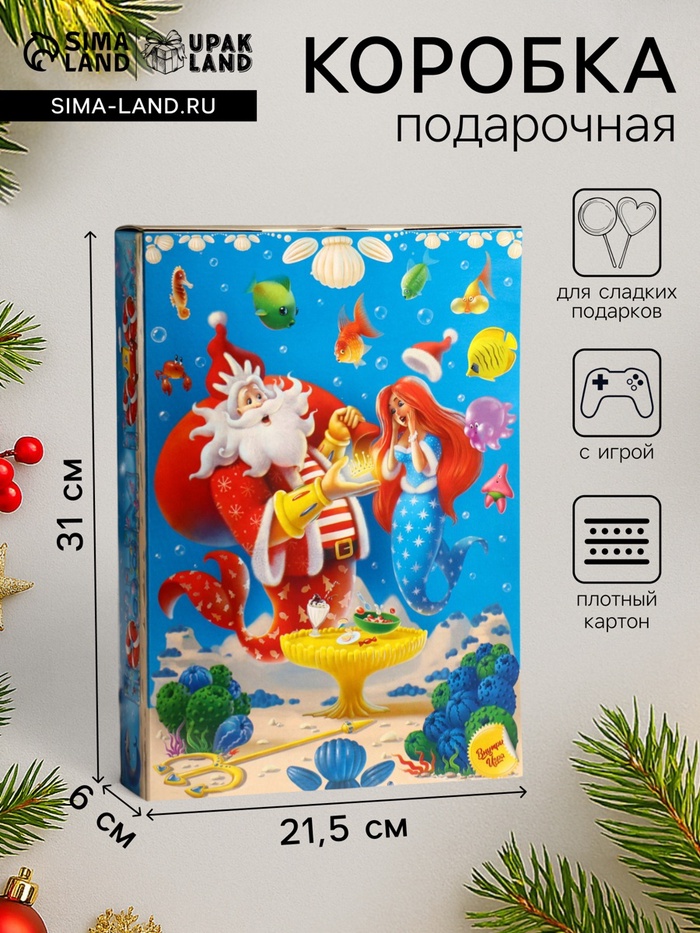 Страна: Россия В боксе: 99 шт Состав: Картон Материалы: картон Фасовка: по 3 шт Индивидуальная упаковка: Стрейч-пленка Сертификат: ЕАС Вид упаковки: Для конфет, Универсальная, Для печенья, Для шоколада Цвет: Разноцветный Форма: Фигурная Длина, см: 31 Ширина, см: 21,5 Высота, см: 6 Допустимый вес вложения, г: 1500 Отделка: УФ-лак Тематика: Рождественская, Новогодняя Символ года: Нет Тематика праздника: Новый год, Рождество Материал: Микрогофрокартон, Картон Вид еды: Для печенья, Для конфет, Для пряников Вид: Складные коробки, Фигурные, Коробки-сундучки, Коробки-книги Размер: Большой (25-45 см) Особенности: С игрой Окошко: Нет Крышка-дно: Нет Дизайн: С рисунком, надписью Фиксированная цена: Да Новогоднее чудо в каждой детали! Коробка-книга «Подводный Новый год» — это оригинальная подарочная упаковка большого формата с праздничным дизайном. Фигурная форма и яркое оформление создают атмосферу зимнего праздника, а прочный картон сохранит содержимое в целости.