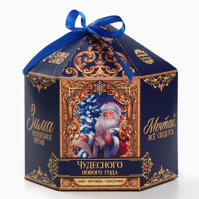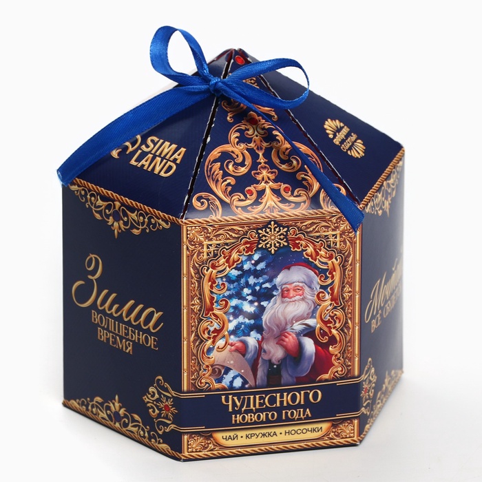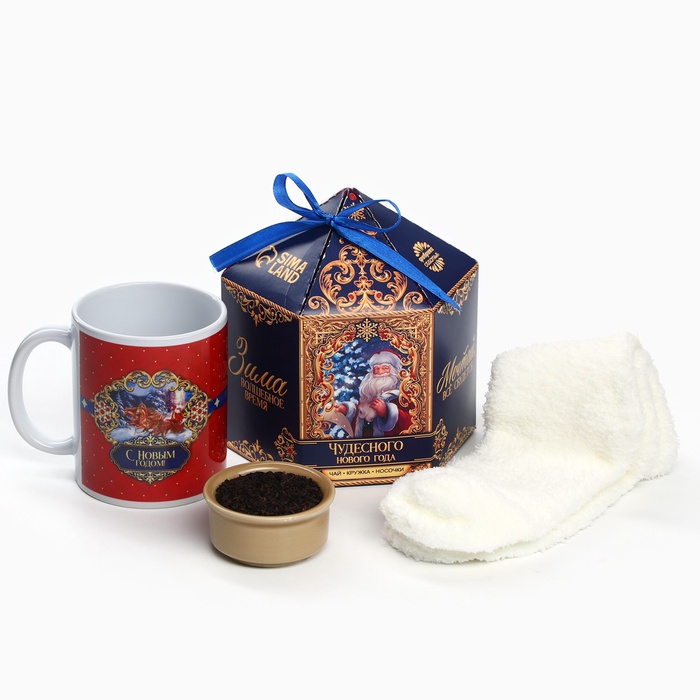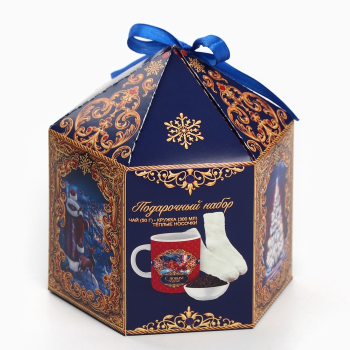 Габариты: 12,5 x 12,5 x 14,5 Страна: Россия В боксе: 32 набор Фасовка: по 1 набор Индивидуальная упаковка: Термоусадочная пленка Сертификат: ЕАС Для кого: Унисекс В наборе, шт.: 3 Вид упаковки: Подарочная коробка Тематика праздника: Новый год Адресат: Без адресата Составляющие набора: Кружка, Носки, Чай Возраст: Для взрослых ПРИ ОФОРМЛЕНИИ ЗАКАЗА, ПРОСИМ ЗАПРАШИВАТЬ АКТУАЛЬНЫЕ СРОКИ ГОДНОСТИ У МЕНЕДЖЕРА Чай чёрный с апельсином Состав: чай чёрный байховый, ароматизатор: апельсин. Способ приготовлении: засыпьте чай в прогретый заварочный чайник из расчёта одна чайная ложка на чашку, залейте кипятком и дайте настояться 3-4 минуты . Срок годности: 36 месяцев Масса нетто: 50 г. Кружка керамическая Состав: керамика. Срок службы: 5 лет Объем: 300 мл. Носки, размер 36-39 Состав: 100% полиэстер. Срок службы: 10 лет Комментарии к товару