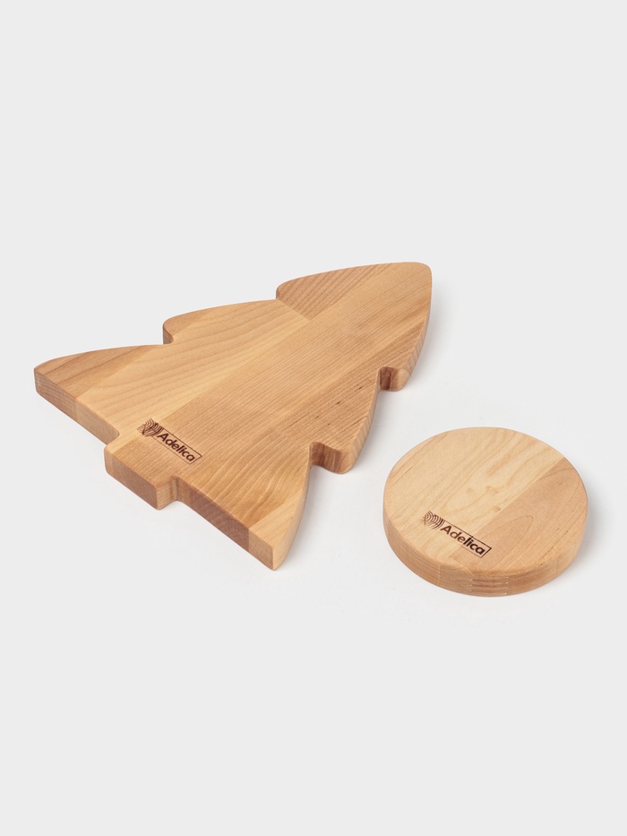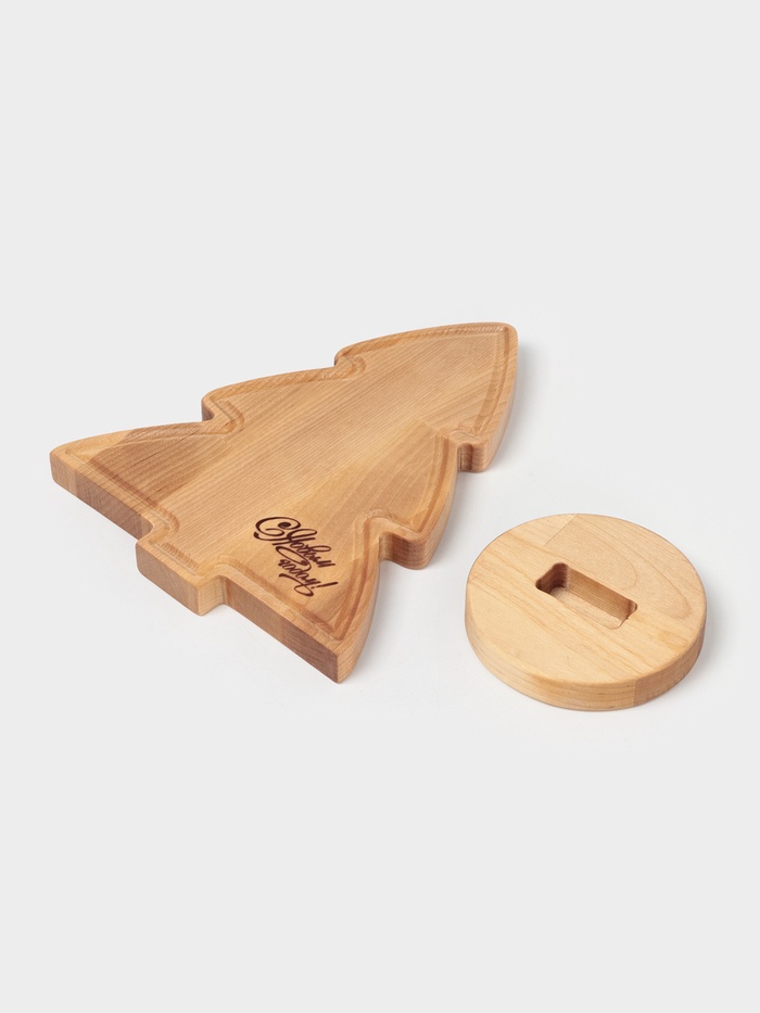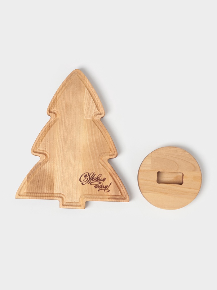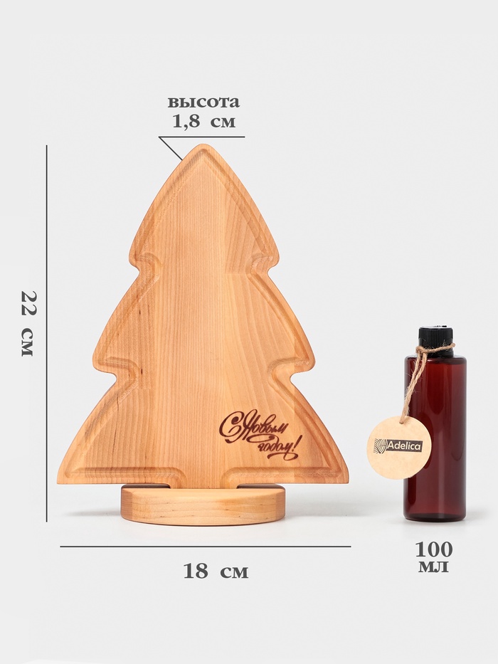 Доска сервировочная на подставке «Ёлка».Магнит.Масло для обработки деревянной посуды - 100 мл.Подарочная коробка с логотипом Adelica.Дополнительно