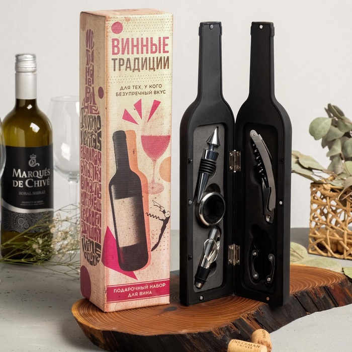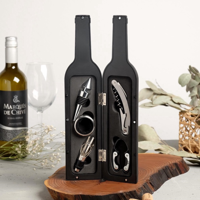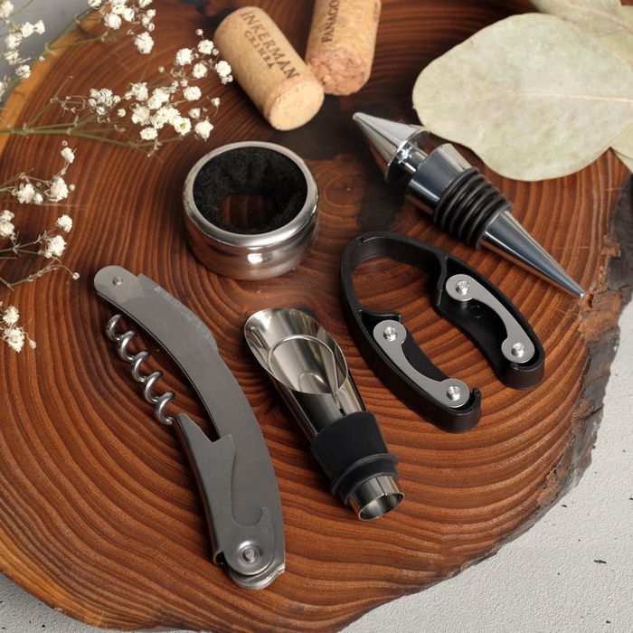 Этот набор создан для истинных ценителей вина. В нем собраны все необходимые аксессуары, которые помогут насладиться напитком с максимальным комфортом и без лишних хлопот.