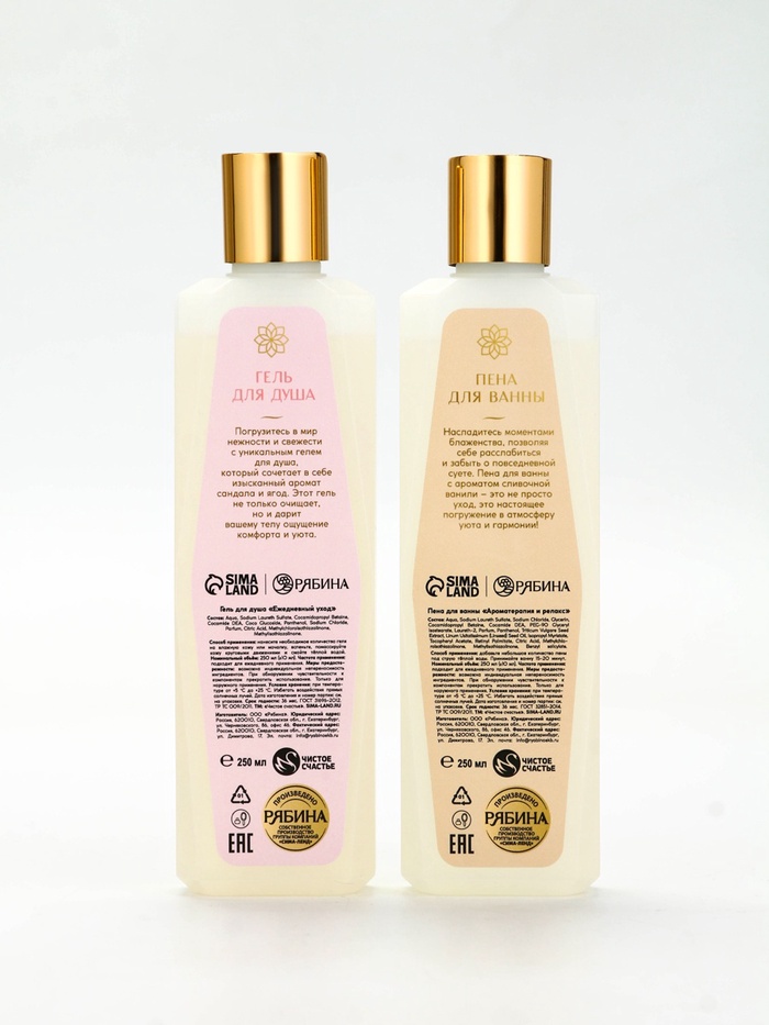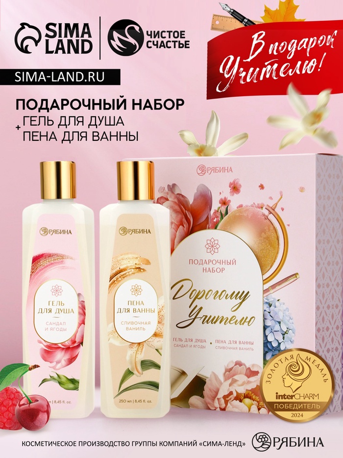 Производитель: Чистое счастье Габариты: 5,2 x 17 x 20 Страна: Россия В боксе: 25 набор Состав: См. на упаковке Материалы: см. на упаковке Фасовка: по 1 набор Индивидуальная упаковка: Полиэтиленовая пленка Сертификат: ЕАС Набор: Да Для кого: Для женщины В наборе, шт.: 2 Вид упаковки: Подарочная коробка Тематика праздника: День учителя Адресат: Учителю Возраст: Взрослый Аромат: Ваниль, Ягоды, Сандал Составляющие набора: Пена для ванн, Гель для душа Возраст: Для взрослых