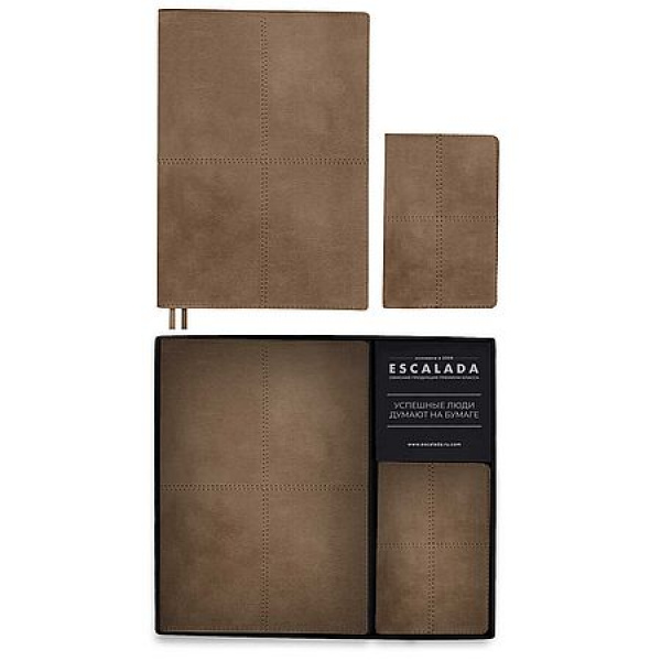 Ежедневник недатированный + обложка для паспорта (набор подарочный) ESCALADA, А5+, 120 л., арт. 70558/ 10 ШЕВРЕТ БЕЖЕВЫЙ (кожзам: ежедневника: 175x245 мм, обложки для паспорта: 95х145 мм, мягкий переплёт, запаянный край, материал обложки: искусственная кожа "Шеврет"; способ крепления блока: ниткошвейный; декор: блинтовое тиснение, отделочная строчка; вн. блок: 120 л., кремовый офсет 70 г/м2, печать в одну краску (клетка), справочный материал: есть; перфорация углов блока: нет; отделка среза: окрашивание пантоном; закладка/-и: два ляссе, каптал: есть; форзац: печать пантоном, персонализация возможна: да; индивидуальная упаковка: подарочная картонная коробка с ПВХ-крышкой + ПЭТ-пакет)