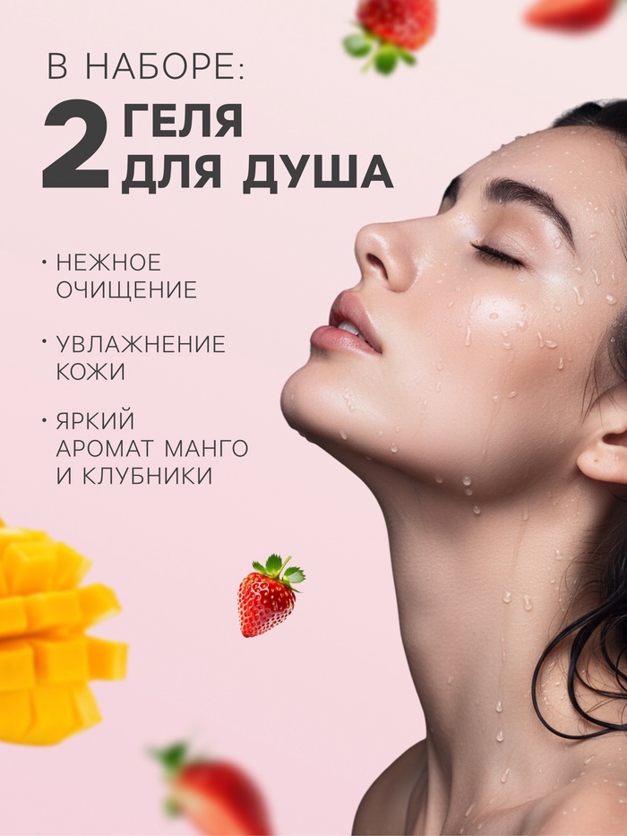 Всплеск сочной клубники и пузырьков радости в каждой капле, мягко очищает кожу.