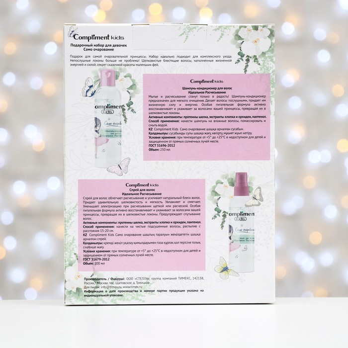 Подарок для самой очаровательной принцессы. Набор идеально подходит для комплексного ухода. Непослушные локоны больше не проблема! Шелковистые блестящие волосы, наполненные жизненной энергией и силой, секрет сказочной красоты маленьких фей.