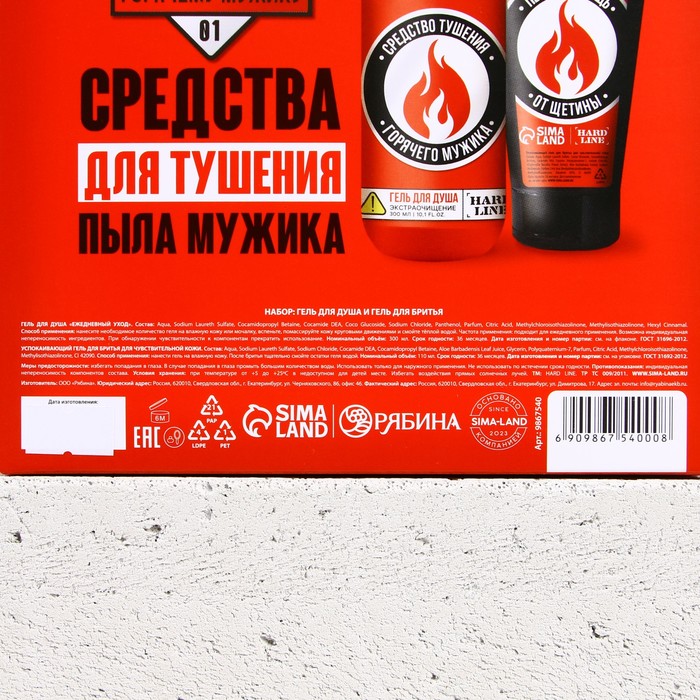 Производитель: HARD LINE Габариты: 18 x 18 x 6,5 Страна: Россия В боксе: 36 набор Состав: См. на упаковке Материалы: см. на упаковке Фасовка: по 1 набор Индивидуальная упаковка: Плёнка Сертификат: ЕАС Набор: Да Цвет: Красный Для кого: Для мужчины В наборе, шт.: 2 В упаковке, шт.: 2 Объём, мл: 110, 300 Вид упаковки: Подарочная коробка Символ года: Нет Тематика праздника: Универсальная тематика Адресат: Без адресата Возраст: Взрослый Материал: Пластик Область применения: Для лица, Для тела Аромат: Парфюм Применение: Для бритья Составляющие набора: Гель для душа, Гель для бритья Темпер. ограничение НЕ НИЖЕ ℃: +5 Темпер. ограничение НЕ ВЫШЕ ℃: +25 Возраст: Для взрослых Тип кожи: Для всех типов Назначение: Очищение, детокс Форма выпуска: Флакон с дозатором