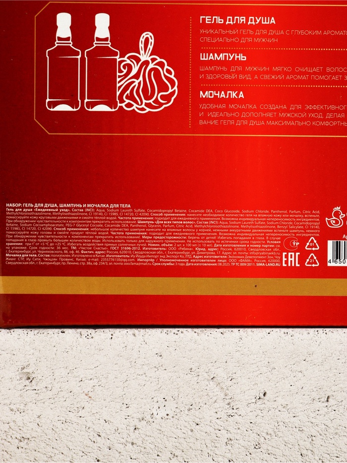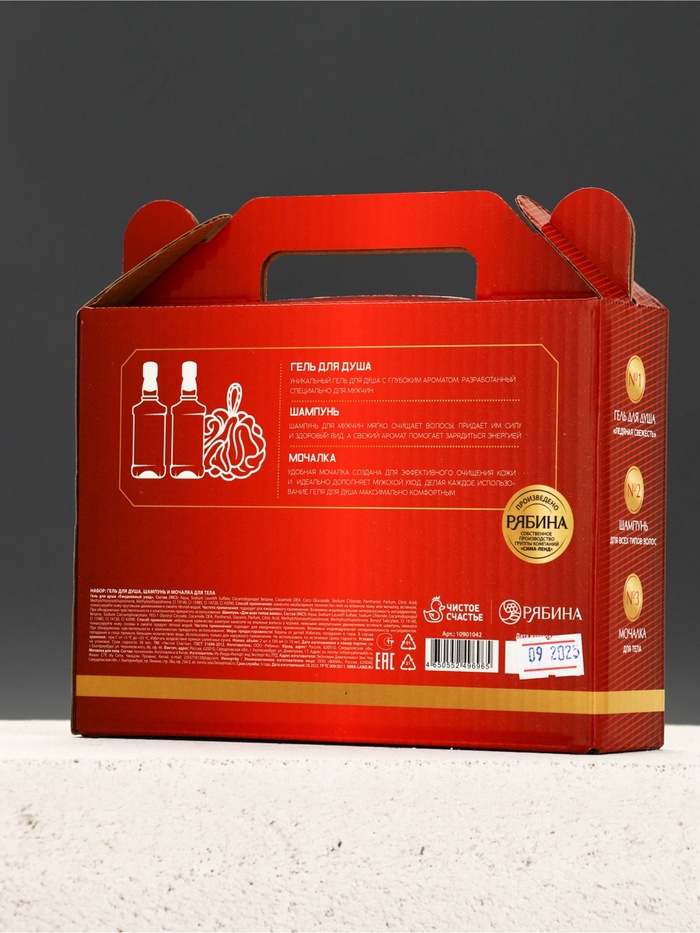 Габариты: 4,5 x 18 x 16,5 Страна: Россия В боксе: 42 набор Состав: См. на упаковке Материалы: см. на упаковке Фасовка: по 1 набор Индивидуальная упаковка: Термоусадочная пленка Сертификат: ЕАС Для кого: Для мужчины В наборе, шт.: 3 Вид упаковки: Подарочная коробка Тематика праздника: 23 Февраля, Универсальная тематика Адресат: Без адресата Возраст: Взрослый Аромат: Ледяная свежесть Составляющие набора: Шампунь, Мочалка, Гель для душа Возраст: Для взрослых Комментарии к товару