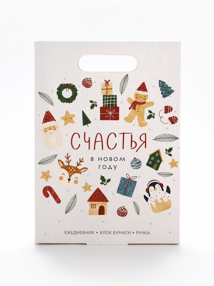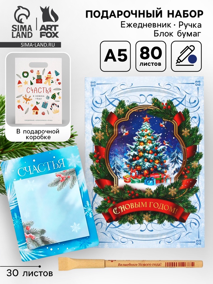 Производитель: ArtFox Габариты: 3 x 17 x 24 Страна: Россия В боксе: 56 набор Состав: См. на упаковке Материалы: см. на упаковке Фасовка: по 1 набор Индивидуальная упаковка: Плёнка Сертификат: Не подлежит сертификации Набор: Да Для кого: Унисекс Формат: А5 Линовка блока: Линейка Плотность, г/м²: 65 Тип скрепления: На склейке В наборе, шт.: 3 Вид упаковки: Коробка картонная, Плёнка Рисунок: Да Символ года: Нет Тематика праздника: Новый год Адресат: Без адресата Возраст: Любой Материал: Бумага, Картон Тип ежедневника: Недатированный Составляющие набора: Ежедневник, Блок бумаг, Ручка