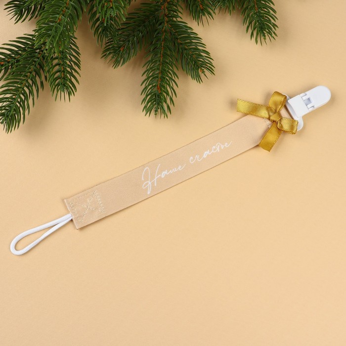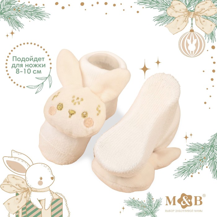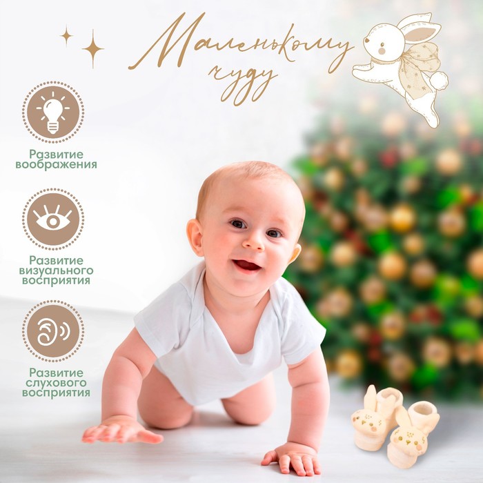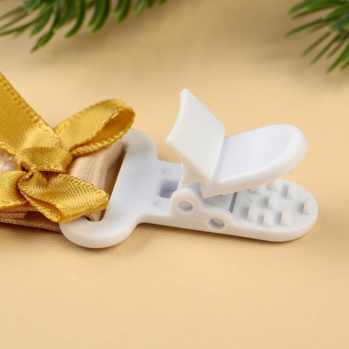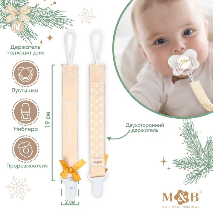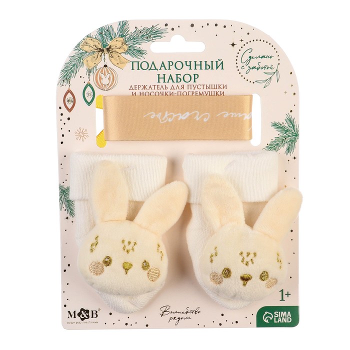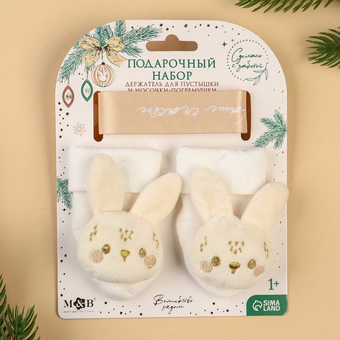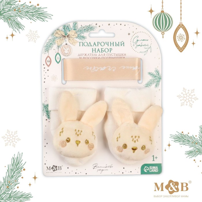 Подарочный новогодний набор игрушек «Наше чудо», держатель для соски-пустышки на ленте, носочки - погремушки, M&B