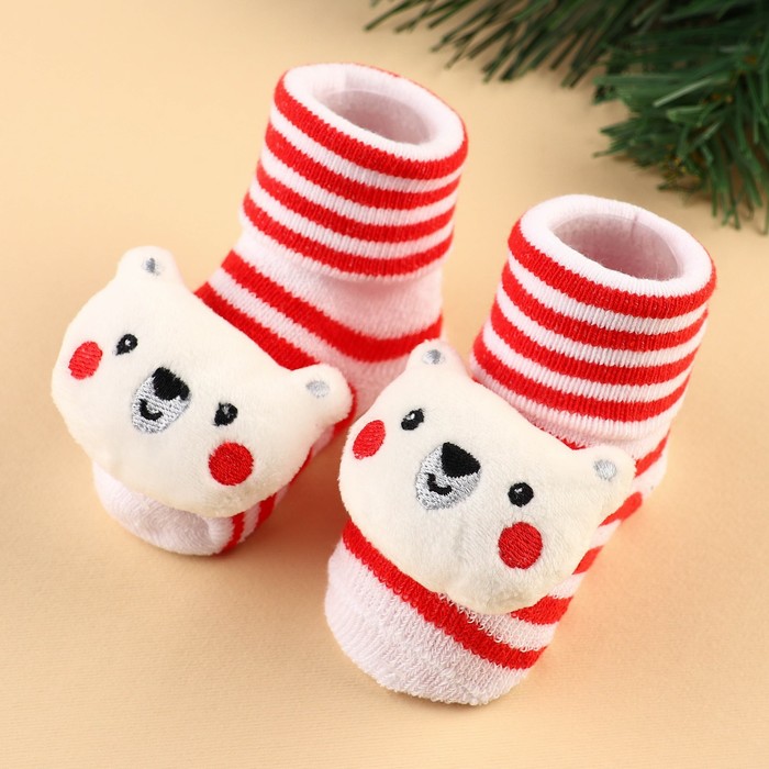 Носочки погремушки со звуковым эффектом не только согреют ножки вашего малыша, но и привлекут его внимание яркими цветами, а также звоном погремушек. Малыш сможет до них дотянуться, потрогать ручками или просто погреметь ими, подергав ножками. Малыш играет и развивает не только мышцы, но и координацию, моторику, внимание, зрение, слуховое восприятие. Милые игрушки пробуждают его стремление исследовать мир вокруг себя. Изготовлены из качественного и безопасного для здоровья детей материала, который не выцветает. Станут отличным подарком вашим близким..