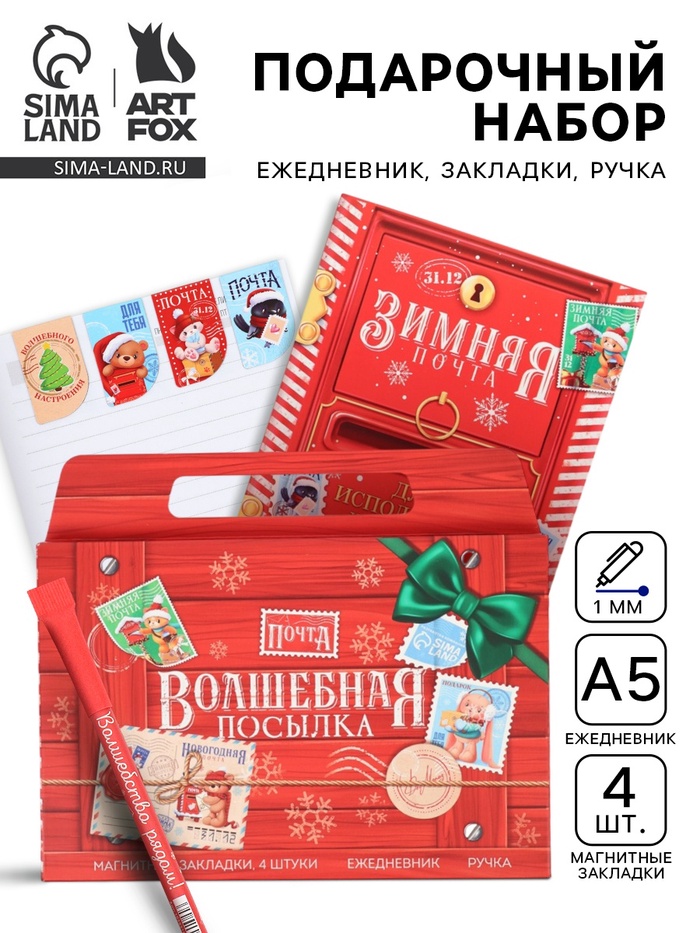 Габариты: 1 x 22 x 18,5 Страна: Россия В боксе: 50 набор Состав: См. на упаковке Материалы: см. на упаковке Фасовка: по 1 набор Индивидуальная упаковка: Плёнка Сертификат: ЕАС Набор: Да Для кого: Унисекс Формат: А5 Линовка блока: Линейка Тип скрепления: На склейке В наборе, шт.: 6 Вид упаковки: Коробка картонная, Плёнка Рисунок: Да Символ года: Нет Тематика праздника: Новый год Адресат: Без адресата Возраст: Детский Материал: Бумага Тип ежедневника: Недатированный Составляющие набора: Ежедневник, Ручка, Закладка Дизайн обложки: С рисунком Комментарии к товару