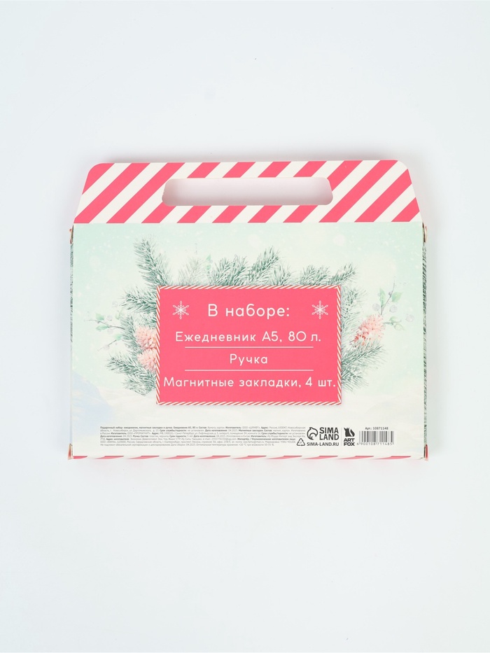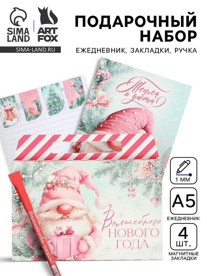 Производитель: ArtFox Габариты: 1 x 22 x 18,5 Страна: Россия В боксе: 50 набор Состав: См. на упаковке Материалы: см. на упаковке Фасовка: по 1 набор Индивидуальная упаковка: Плёнка Сертификат: ЕАС Набор: Да Для кого: Для девочки Формат: А5 Линовка блока: Линейка Тип скрепления: На склейке В наборе, шт.: 6 Вид упаковки: Коробка картонная, Плёнка Рисунок: Да Символ года: Нет Тематика праздника: Новый год Адресат: Без адресата Возраст: Детский Материал: Бумага Тип ежедневника: Недатированный Составляющие набора: Ручка, Закладка, Ежедневник Дизайн обложки: С рисунком