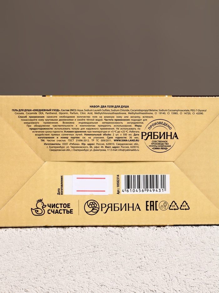Производитель: Чистое счастье Габариты: 10,5 x 24 x 18,5 Страна: Россия В боксе: 11 набор Состав: См. на упаковке Материалы: см. на упаковке Фасовка: по 1 набор Индивидуальная упаковка: Картонная коробка / упаковка Сертификат: ЕАС Набор: Да Цвет: Коричневый Для кого: Для мужчины В наборе, шт.: 2 Объём, мл: 500 Вид упаковки: Подарочная коробка Тематика праздника: Универсальная тематика Адресат: Без адресата Возраст: Взрослый Аромат: Лимон, Пшеница, Хмель, Бергамот Составляющие набора: Гель для душа Темпер. ограничение НЕ НИЖЕ ℃: +5 Темпер. ограничение НЕ ВЫШЕ ℃: +25 Возраст: Для взрослых Назначение: Очищение, детокс Форма выпуска: Флакон без дозатора