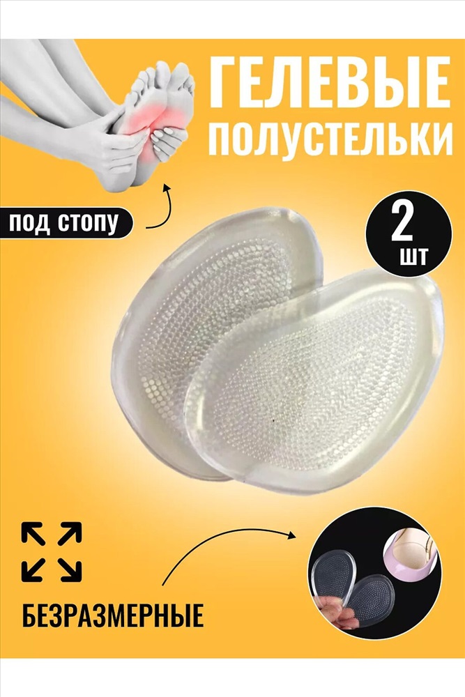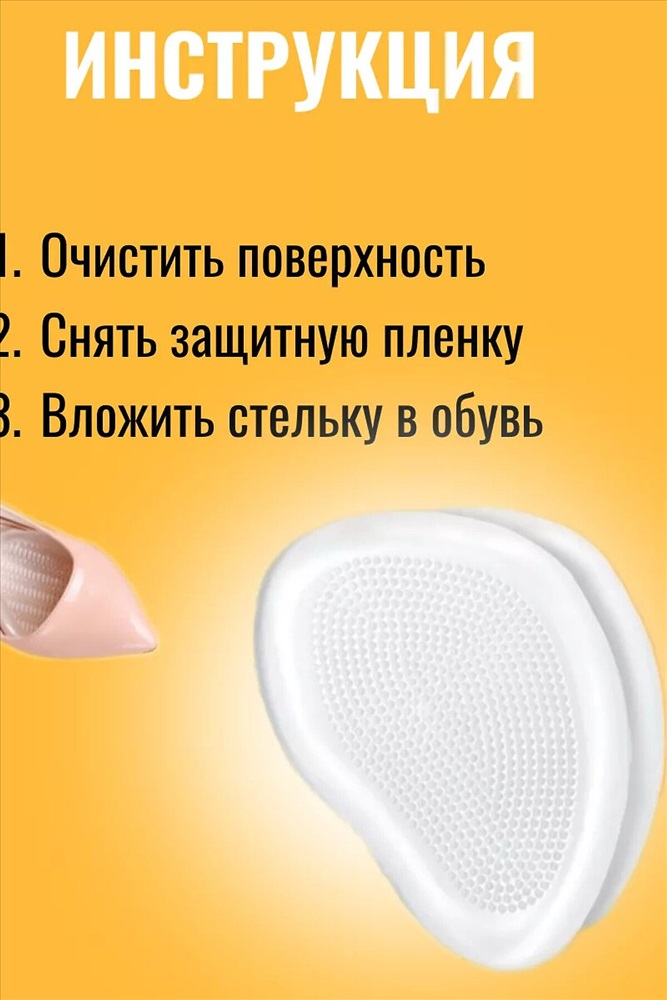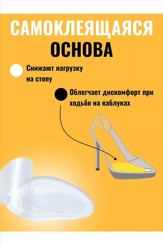 .Ортопедические полустельки гелевые под стопу - это не просто удобство, но и забота о вашем здоровье. Полустельки снижают нагрузку во время ходьбы или длительного стояния, обеспечивая максимальный комфорт при ношении обуви на высоком каблуке. Они уменьшают давление в области стопы и пятки, делая каждый шаг более легким и приятным. В комплекте идёт 1 пара стелек под пятку, то есть 2 штуки. Полустельки идеально подходят для любого типа обуви и предназначены для многоразового использования. Можно стирать в теплой мыльной воде, сушить естественным способом. Самоклеящаяся основа надежно фиксирует стельки в нужном положении, обеспечивая их длительную службу. Полустельки ортопедические разгружают позвоночник, также голеностопные, коленные и тазобедренные суставы. Это значит, что они не только снижают боль при ходьбе, но и влияют на общее состояние вашего организма. Помимо этого, гелевые полустельки предотвращают образование мозолей и натоптышей, сохраняя кожу стоп в здоровом состоянии.