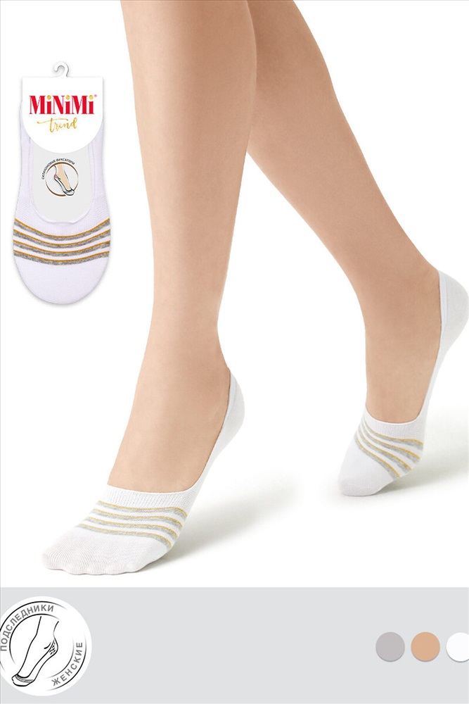 Женские подследники MiNiMi в полоску, укрепленные силиконом. В составе - высококачественный хлопок, который позволяет коже дышать и отлично впитывает влагу, и эластан, который обеспечивает превосходное облегание. Специальные силиконовые вставки на пятке надежно фиксируют подследники на ноге - они плотно прилегают и не сползают при ходьбе. Прочные, устойчивы к истиранию. Подследники стильно смотрятся благодаря лаконичному дизайну и гармонично сочетаются с самой разнообразной обувью.