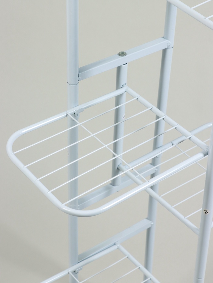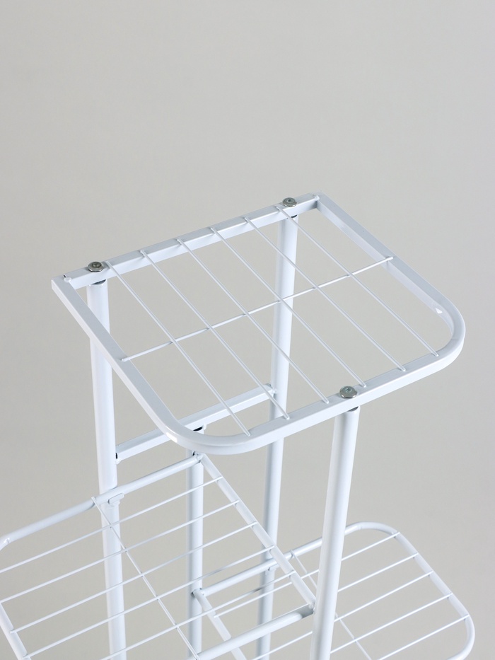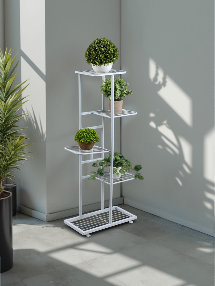 Габариты: 44 x 26,5 x 8 Страна: Китай В боксе: 18 шт Состав: Металл Материалы: металл Фасовка: по 1 шт Индивидуальная упаковка: коробка Габариты товара: 41 см × 22 см × 98 см Сертификат: ЕАС Цвет: Белый Вид установки: Напольное Материал: Металл Создайте уютный уголок для ваших растений с помощью напольной этажерки из металла. Пять полок создают идеальное сочетание функциональности и эстетики, вписывающееся в любой интерьер. Эта подставка помогает эффективно использовать вертикальное пространство, превращая его в стильную зону для комнатных цветов или декоративных предметов. Высота 95 см делает её удобной для просмотра и ухода за растениями на каждом уровне.