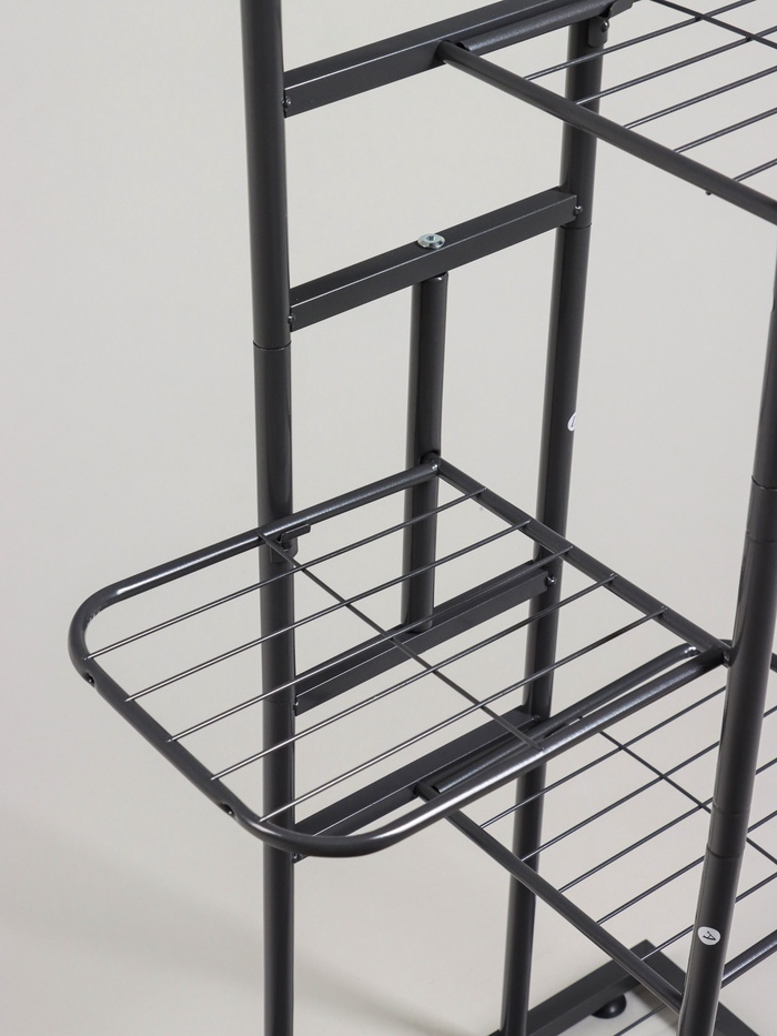 Преимущества решения Многофункциональная напольная стойка помогает не только организовать хранение, но и добавить эстетики в пространство. Сочетание практичности и красоты делает её универсальным выбором для гостиных, спален или балконов. Она становится основой для создания уютной атмосферы и поддержания порядка. Комментарии к товару