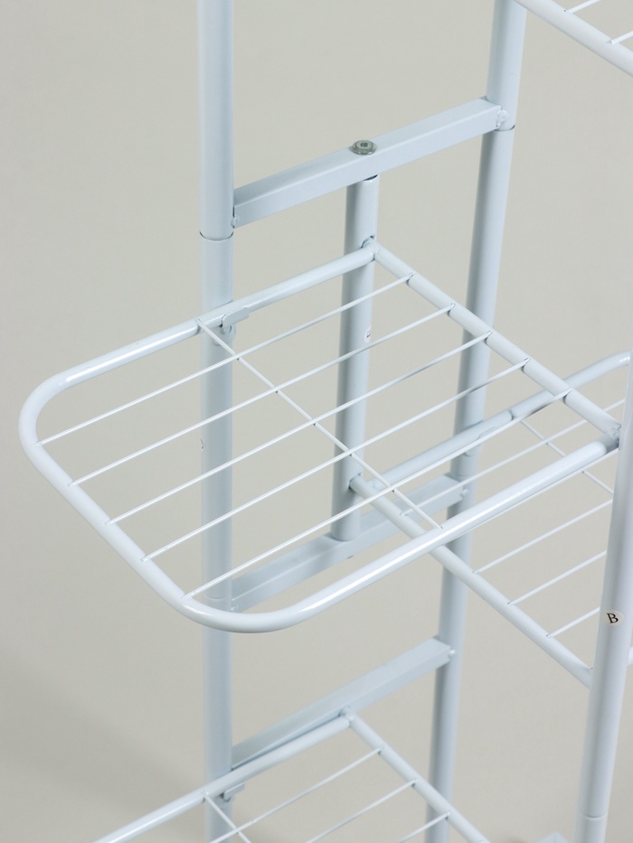 Габариты: 45 x 25,5 x 9 Доставка: Платная Страна: Китай В боксе: 18 шт Состав: Металл Материалы: металл Фасовка: по 1 шт Индивидуальная упаковка: коробка Габариты товара: 41 см × 22 см × 108 см Сертификат: ЕАС Цвет: Белый Вид установки: Напольное Материал: Металл Превратите пространство в стильный многоуровневый сад с помощью напольной конструкции из металла. Шесть полок создают идеальное сочетание функциональности и элегантности, которое украсит любой интерьер. Эта подставка помогает эффективно использовать вертикальное пространство, превращая его в комфортную зону для комнатных растений или декоративных предметов. Высота 105 см позволяет разместить растения на разных уровнях, создавая эффектный визуальный ряд.