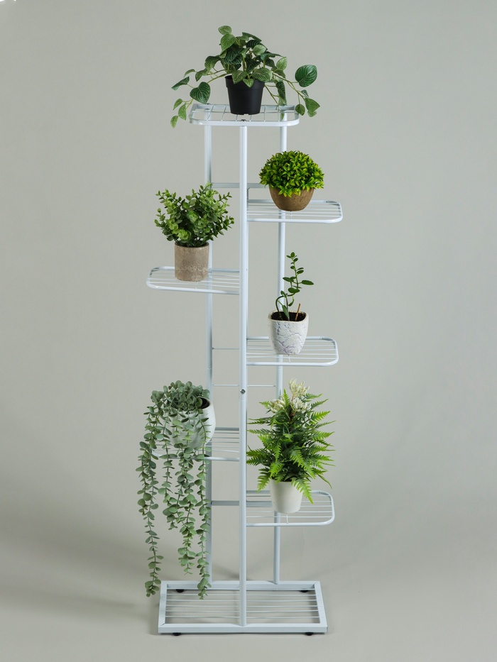 Функциональность и стиль Эта стойка сочетает в себе практичность и современный дизайн. Её цвет визуально расширяет пространство, создавая ощущение лёгкости и порядка. Семь полок позволяют организовать зелёный уголок или упорядочить книги и аксессуары. Идеальный выбор для тех, кто ценит функциональность и стремится к гармонии в интерьере. Комментарии к товару