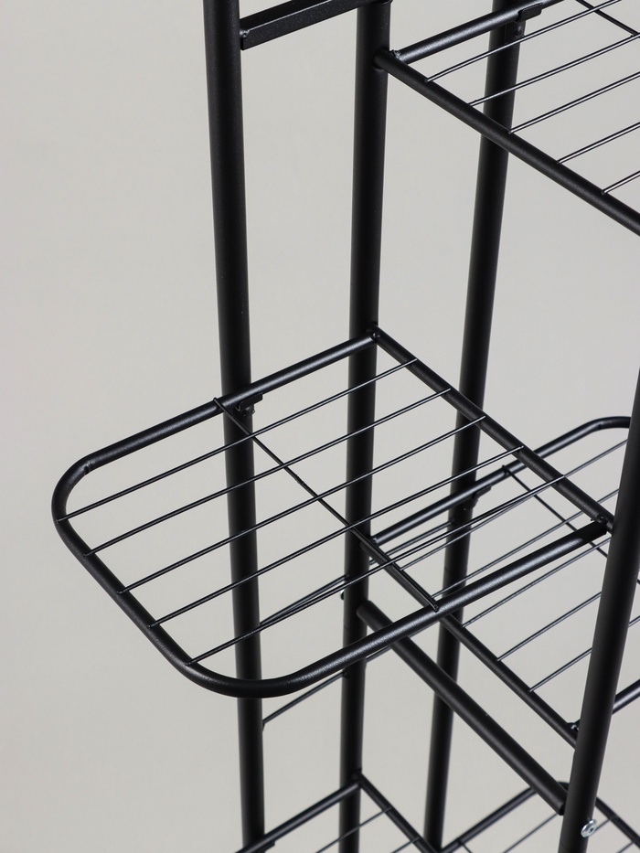 Габариты: 65,5 x 24 x 8,5 Страна: Китай В боксе: 10 шт Состав: Металл Материалы: металл Фасовка: по 1 шт Индивидуальная упаковка: коробка Габариты товара: 41 см × 22 см × 126 см Сертификат: ЕАС Цвет: Чёрный Вид установки: Напольное Материал: Металл Напольная стойка для цветов с семью полками — это практичное и эстетичное решение для организации пространства. Её минималистичный дизайн делают её универсальным элементом декора, который подойдёт для дома, офиса или кафе. Прочная металлическая конструкция обеспечивает устойчивость, а семь уровней полок предоставляют простанство для размещения растений, книг или декоративных аксессуаров. Особенности