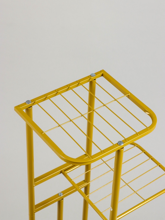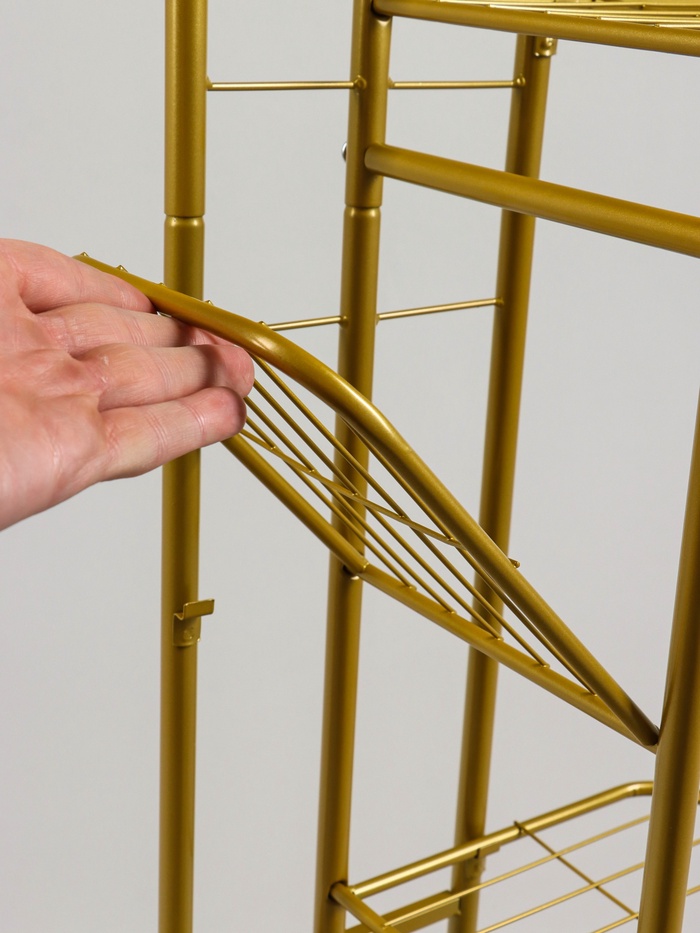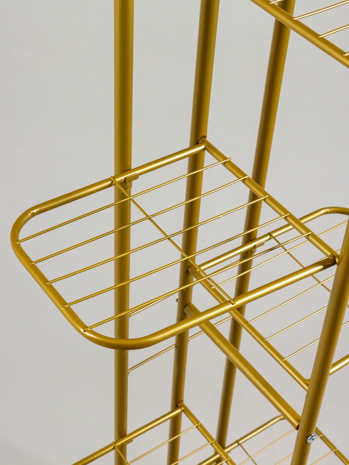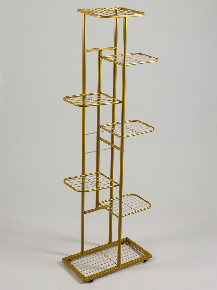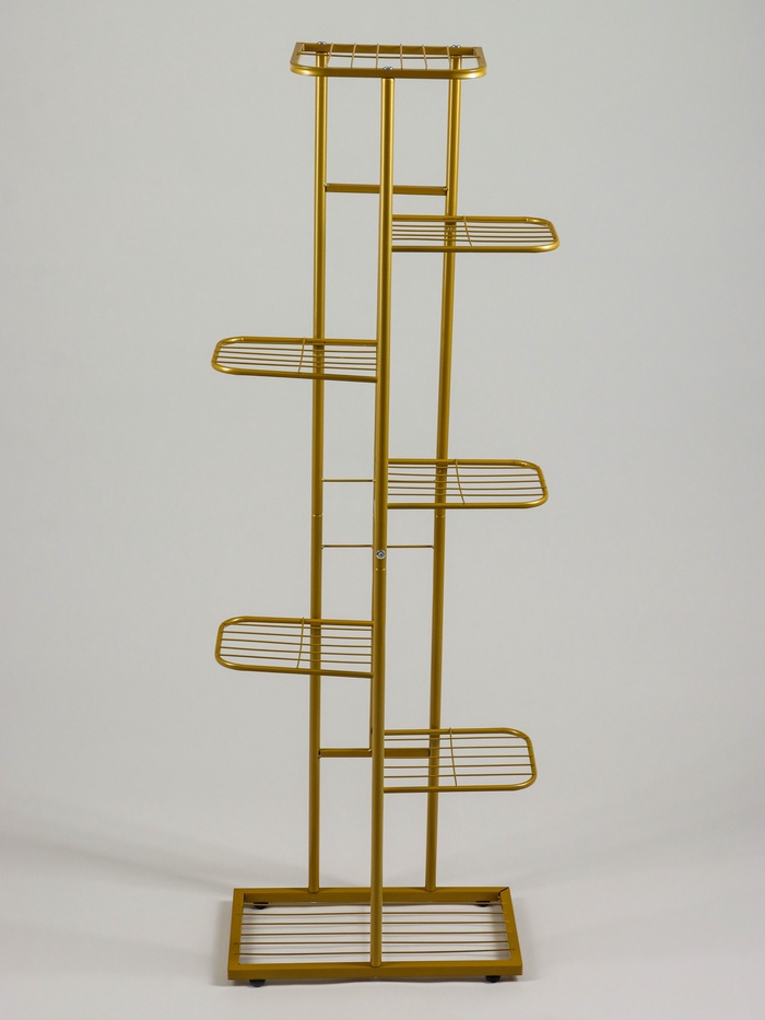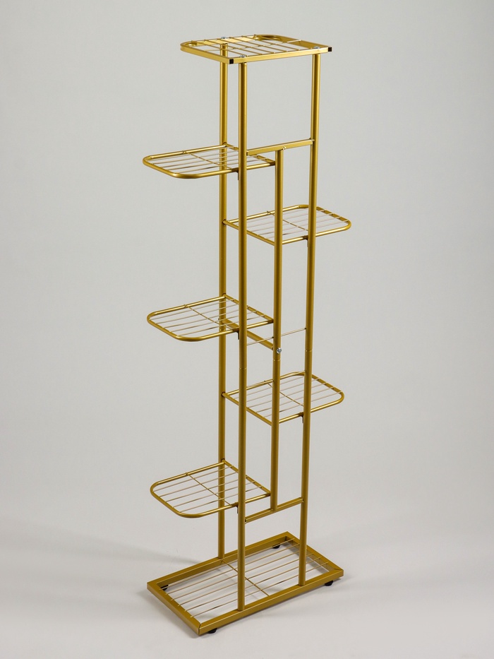 Габариты: 64 x 24 x 8,5 Страна: Китай В боксе: 10 шт Состав: Металл Материалы: металл Фасовка: по 1 шт Индивидуальная упаковка: коробка Габариты товара: 41 см × 22 см × 126 см Сертификат: ЕАС Цвет: Золотистый Вид установки: Напольное Материал: Металл Напольная стойка для цветов с семью полками — это практичное и эстетичное решение для организации пространства. Её минималистичный дизайн делают её универсальным элементом декора, который подойдёт для дома, офиса или кафе. Прочная металлическая конструкция обеспечивает устойчивость, а семь уровней полок предоставляют простанство для размещения растений, книг или декоративных аксессуаров. Особенности