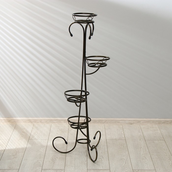 Доставка: Платная Страна: Россия В боксе: 1 шт Состав: Металл Материалы: металл Фасовка: по 1 шт Индивидуальная упаковка: Стрейч-пленка Сертификат: Не подлежит сертификации Цвет: Бронзовый Диаметр, см: 13 Вид установки: Напольное Материал: Металл Напольная подставка для цветов «Маркиз» – элегантное решение для вашего интерьера. Выполненная из прочного металла и окрашенная в благородный бронзовый цвет, она станет стильным дополнением вашей комнаты или балкона. Подходит для размещения четырех горшков диаметром до 13 см. Удобная, надежная и эстетичная – эта подставка добавит вашему пространству утонченности.