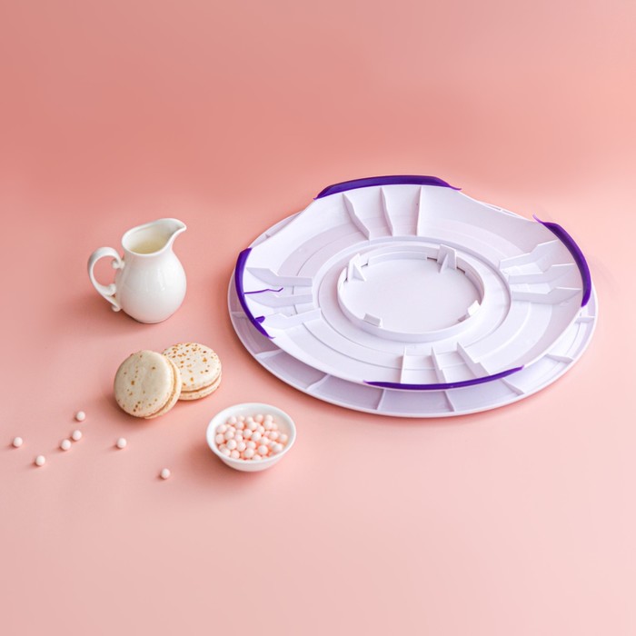 Подставка изготовлена из прочного и лёгкого пластика, который не требует особого ухода и легко моется. Компактные размеры делают её удобной для хранения даже на маленькой кухне. Этот аксессуар подойдет для создания многоуровневых тортов, а белый цвет подставки отлично впишется в любой интерьер.