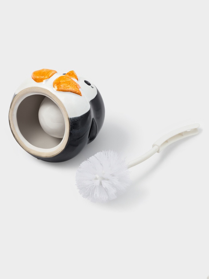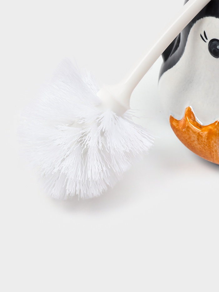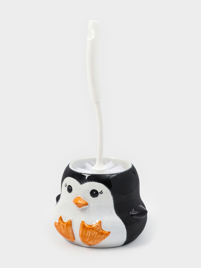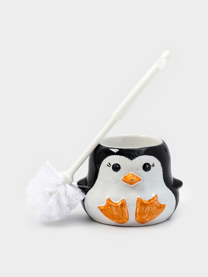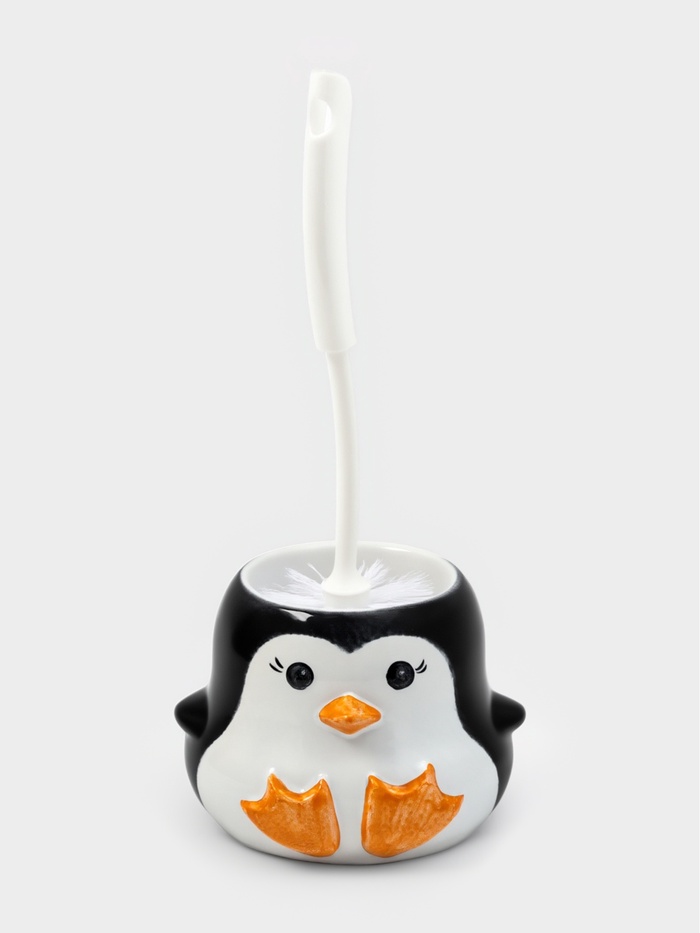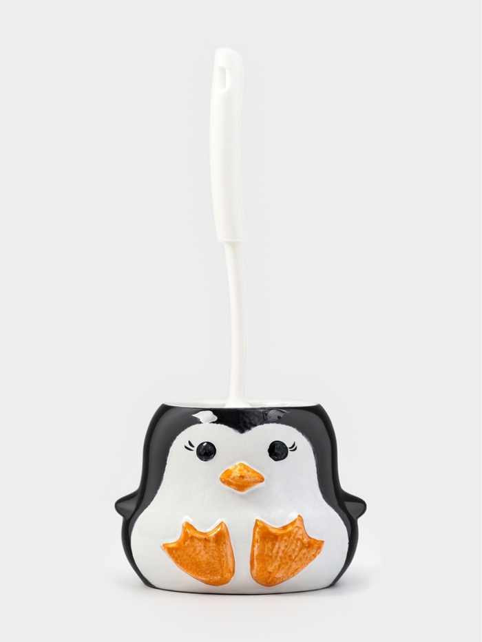 Страна: Россия В боксе: 1 шт Состав: Фарфор Материалы: фарфор Фасовка: по 1 шт Индивидуальная упаковка: Картонная коробка Сертификат: Не подлежит сертификации Цвет: Белый Материал ручки: Пластик Рисунок: Да Материал подставки: Фарфор Вид установки: Напольный Туалетный ёршик с подставкой «Пингвин» - функциональный аксессуар для поддержания чистоты в санузле. Фарфоровая подставка с декоративным рисунком сочетает практичность и эстетику, органично дополняя интерьер ванной комнаты. Особенности