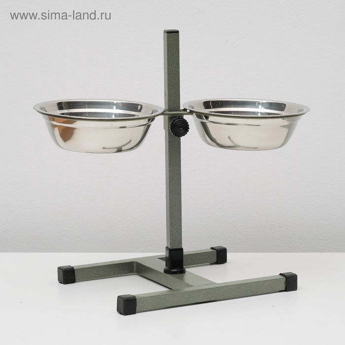 Стойка с 2-мя мисками для кормления сразу нескольких животных, это – идеальное решение для кормления щенков и собак подростков, живущих на одной территории.
