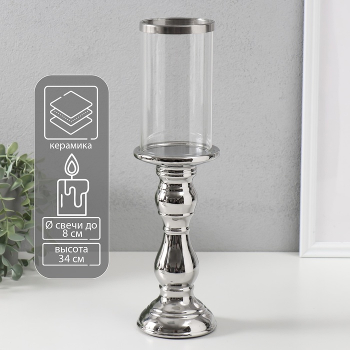 Страна: Китай В боксе: 12 шт Состав: Керамика, стекло Материалы: керамика, стекло Фасовка: по 1 шт Индивидуальная упаковка: Картонная коробка Габариты товара: 9,3 см × 9,3 см × 34 см Сертификат: Не подлежит сертификации Набор: Нет Цвет: Серебристый Высота, см: 34 Количество рожков: 1 Диаметр под свечу, см: 8 Вид упаковки: Коробка картонная Символ года: Нет Тематика праздника: Универсальная тематика Адресат: Без адресата Материал: Керамика Свеча в комплекте: Нет Фиксированная цена: Да Комментарии к товару