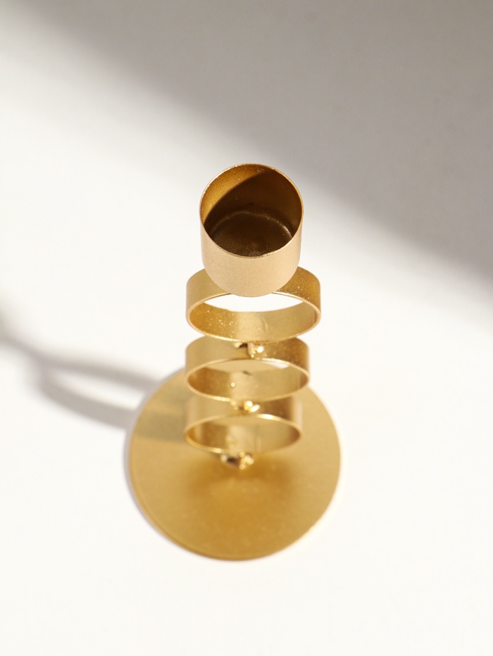 Создайте атмосферу Мягкий свет свечи, преломляясь в кольцах, отбрасывает выразительные тени. Это превращает обычный вечер в особенное событие. Подсвечник станет изящным самостоятельным декором даже без свечи, внося в пространство ноту сдержанного шика. Комментарии к товару