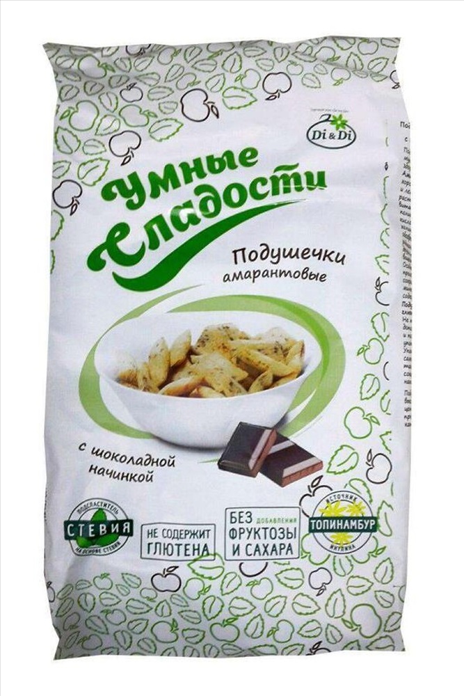 ID товара: 1187289 Сезон: Демисезон Производитель: Di&Di Срок годности (мес): 12 Вес: (г), 150 Страна бренда: Россия Страна производства: Россия Подушечки амарантовые "УмСладости" с шоколадной начинкой 150г Состав: шоколадная начинка (жир растительный, подсластитель изомальт, сыворотка молочная, мальтодекстрин, нелауриновый заменитель какао-масла, какао-порошок, сухое молоко, порошок рожкового дерева, подсластитель – экстракт стевии (стевиозид), эмульгатор – лецитин соевый, ванилин), мука амарантовая грубого помола, мука рисовая грубого помола, мука кукурузная грубого помола, топинамбур сушеный, соль, витаминная смесь. Комментарии к товару