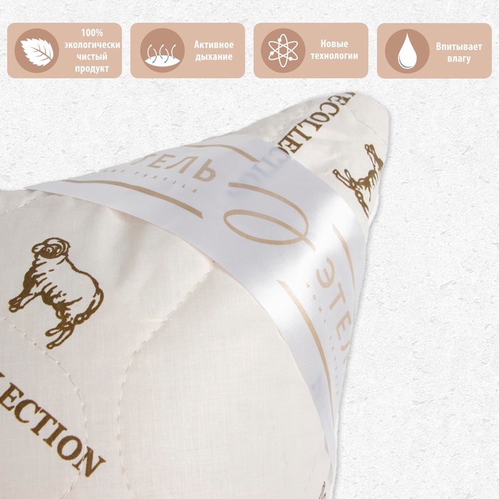 Наполнитель состоит из овечьей шерсти и нежнейшего лебяжьего пуха. Подушка не только обеспечивает правильное положение тела ночью, но и: