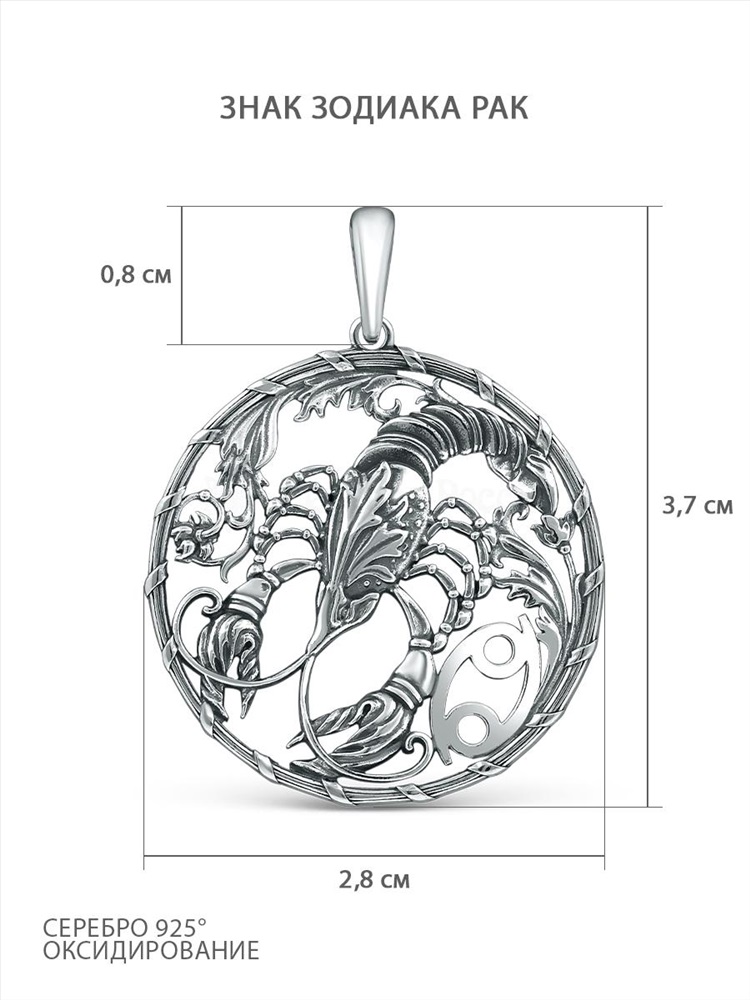 Подвеска из чернёного серебра - Рак 925 пробы П-0307о