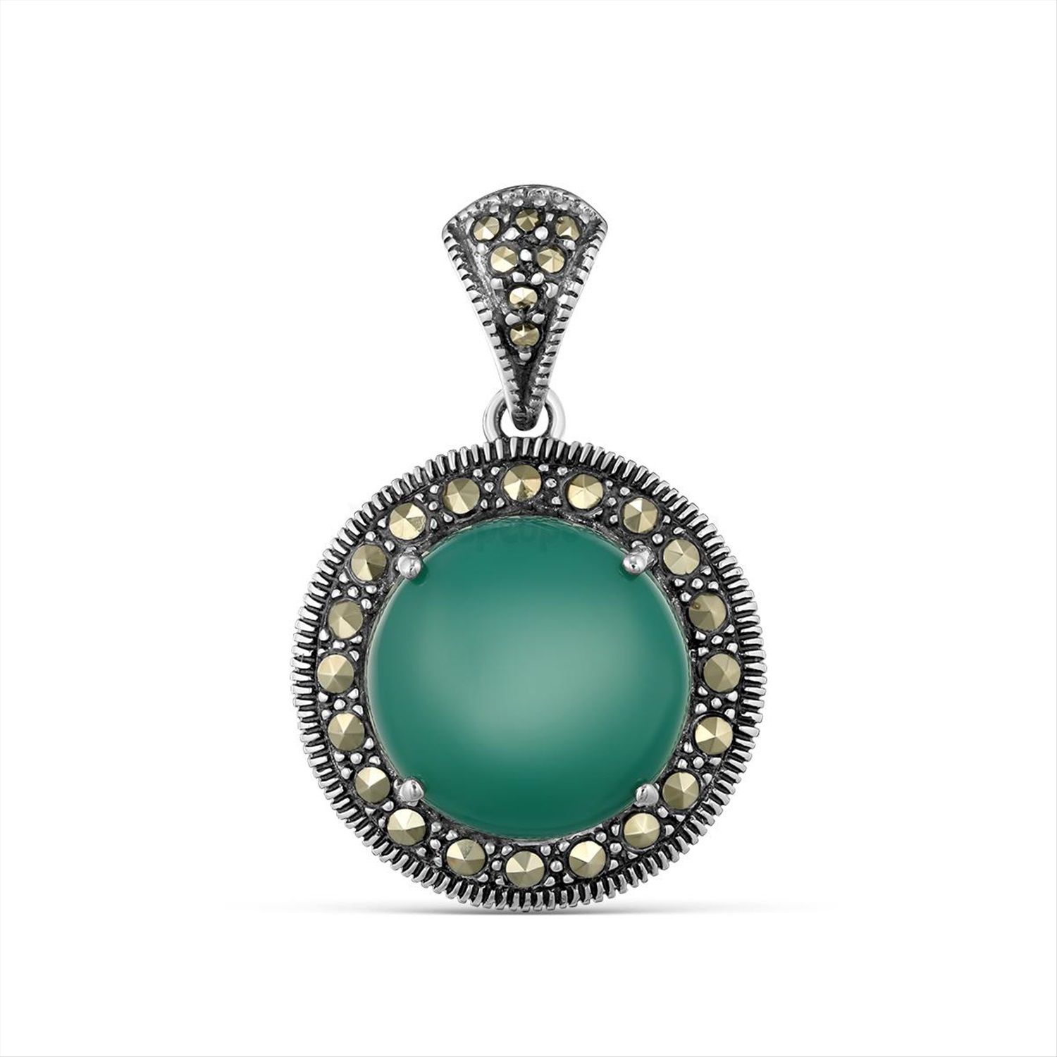 Подвеска из чернёного серебра с нат. агатом и марказитами 925 пробы MN00595G-AG