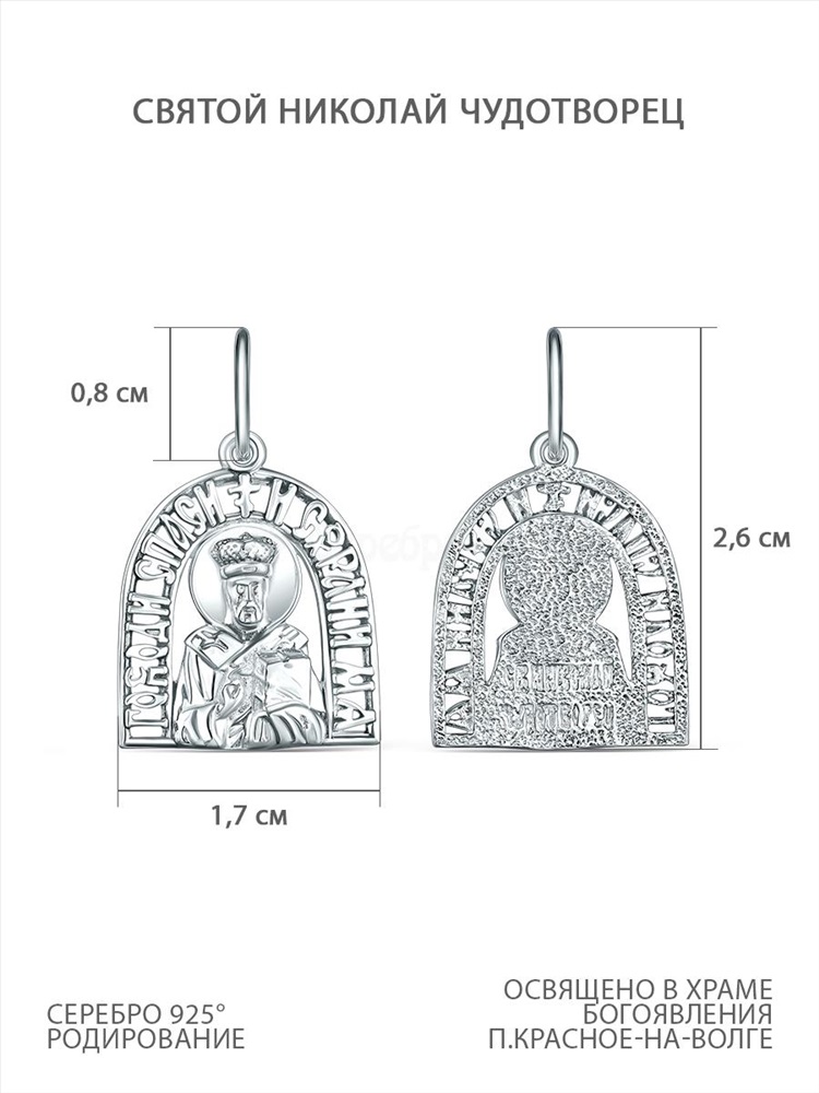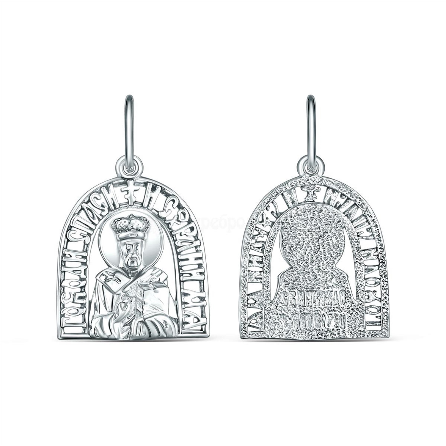 Подвеска из серебра родированная - святой Николай Чудотворец 925 пробы К3-088р