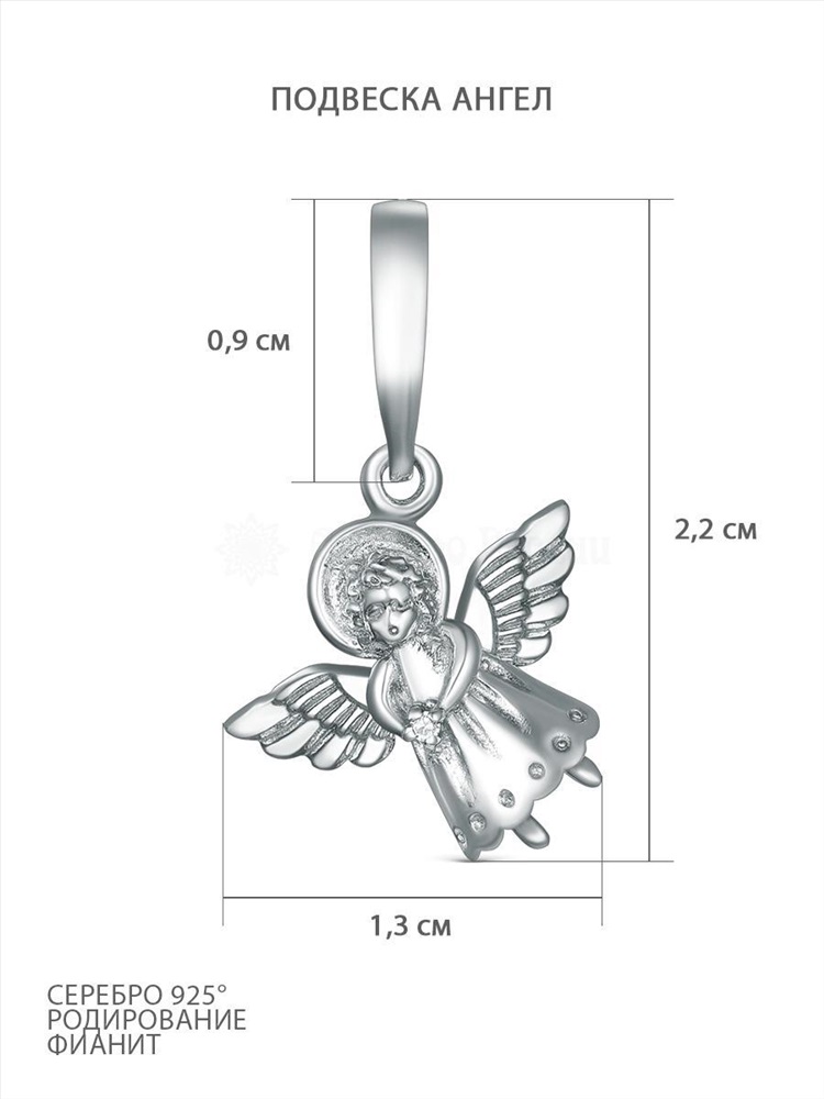 Подвеска из серебра с фианитом родированная - Ангел п-012р