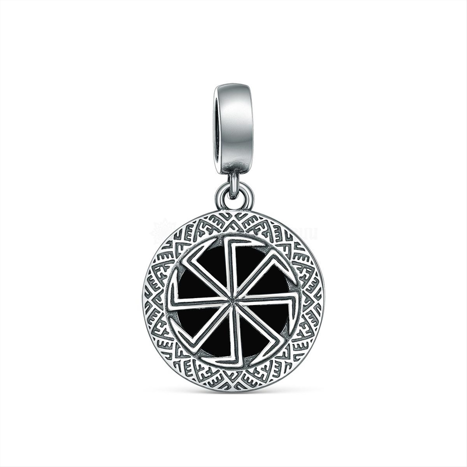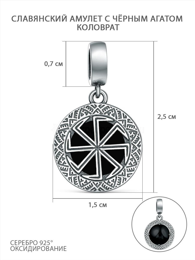 Подвеска-оберег из чернёного серебра с чёрным агатом - Коловрат (Светлый, солнечный символ, который сопровождал славян в их славных делах и полит кровью и потом ушедших поколений, отстоявших родную зе 5102003 Коловрат